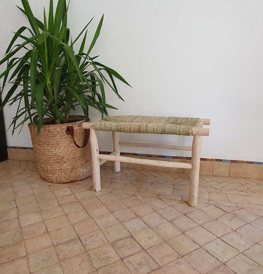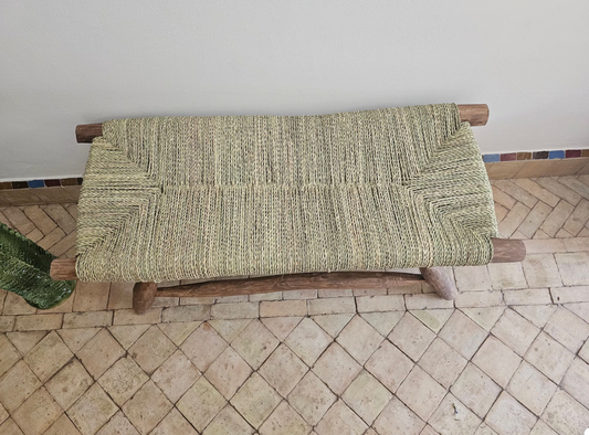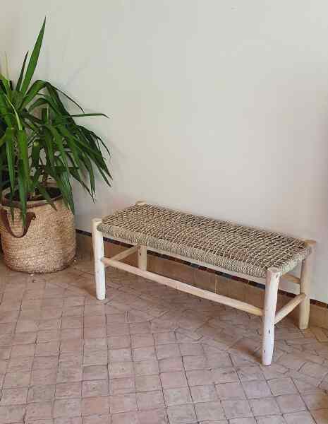 Tressage Banc en bois massif, Artisanat marocain -Libitii Shop