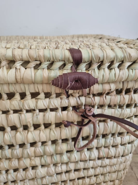 Boîte de rangement en osier anses en cuir-Libitii Shop