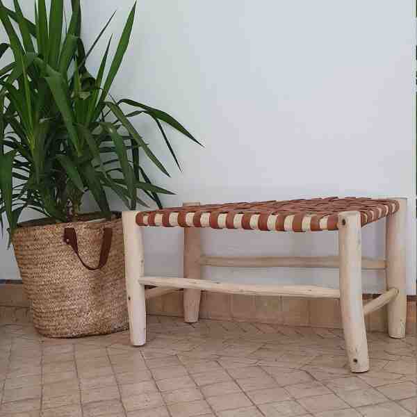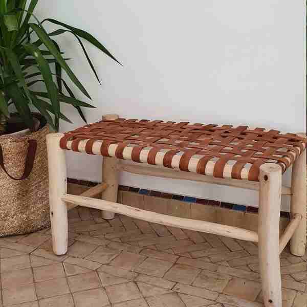 Traditionnel banc tressé marocain Pratique dans l'entrée, pour s’asseoir dans le salon ou simplement décoratif, le banc tissé en cuir apportera une ambiance bohème chic. Utilisez-le également en bout de lit dans la chambre.