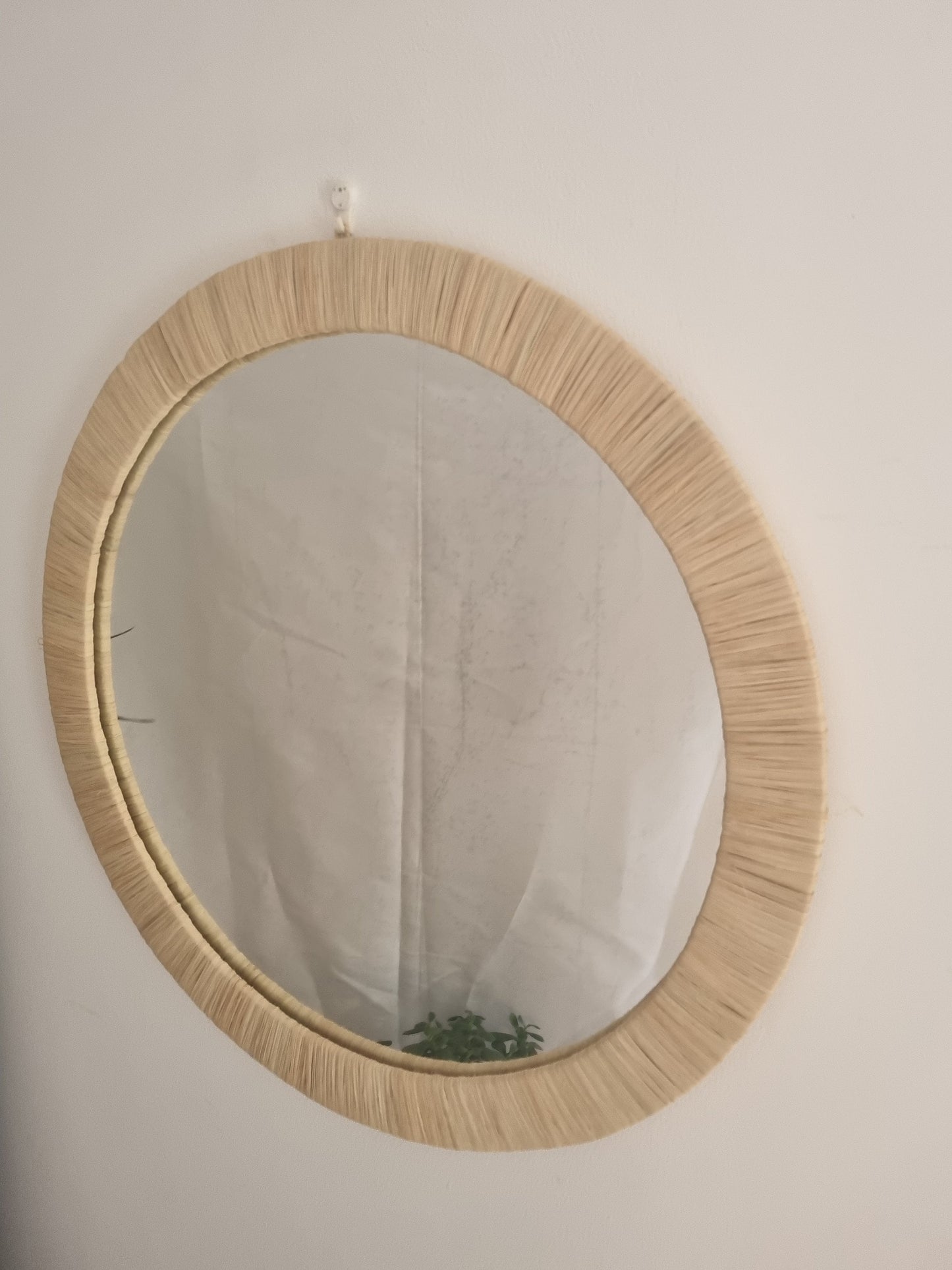Ce miroir décoratif avec sa texture naturelle - flair boho ; se fond parfaitement dans le décor vintage, chic et moderne.