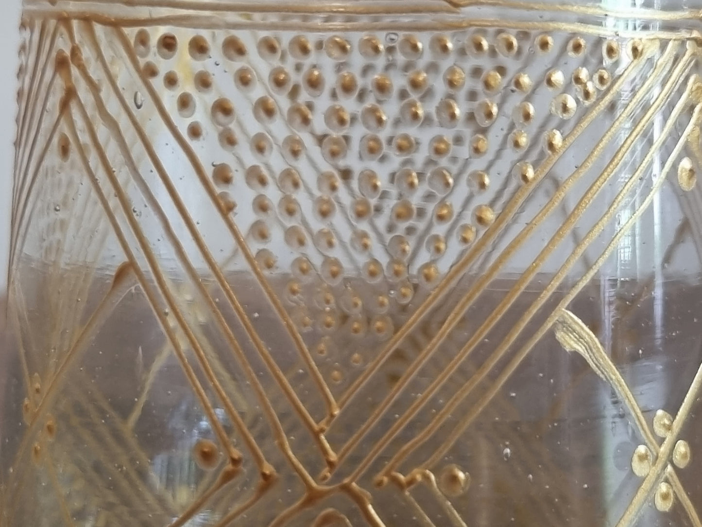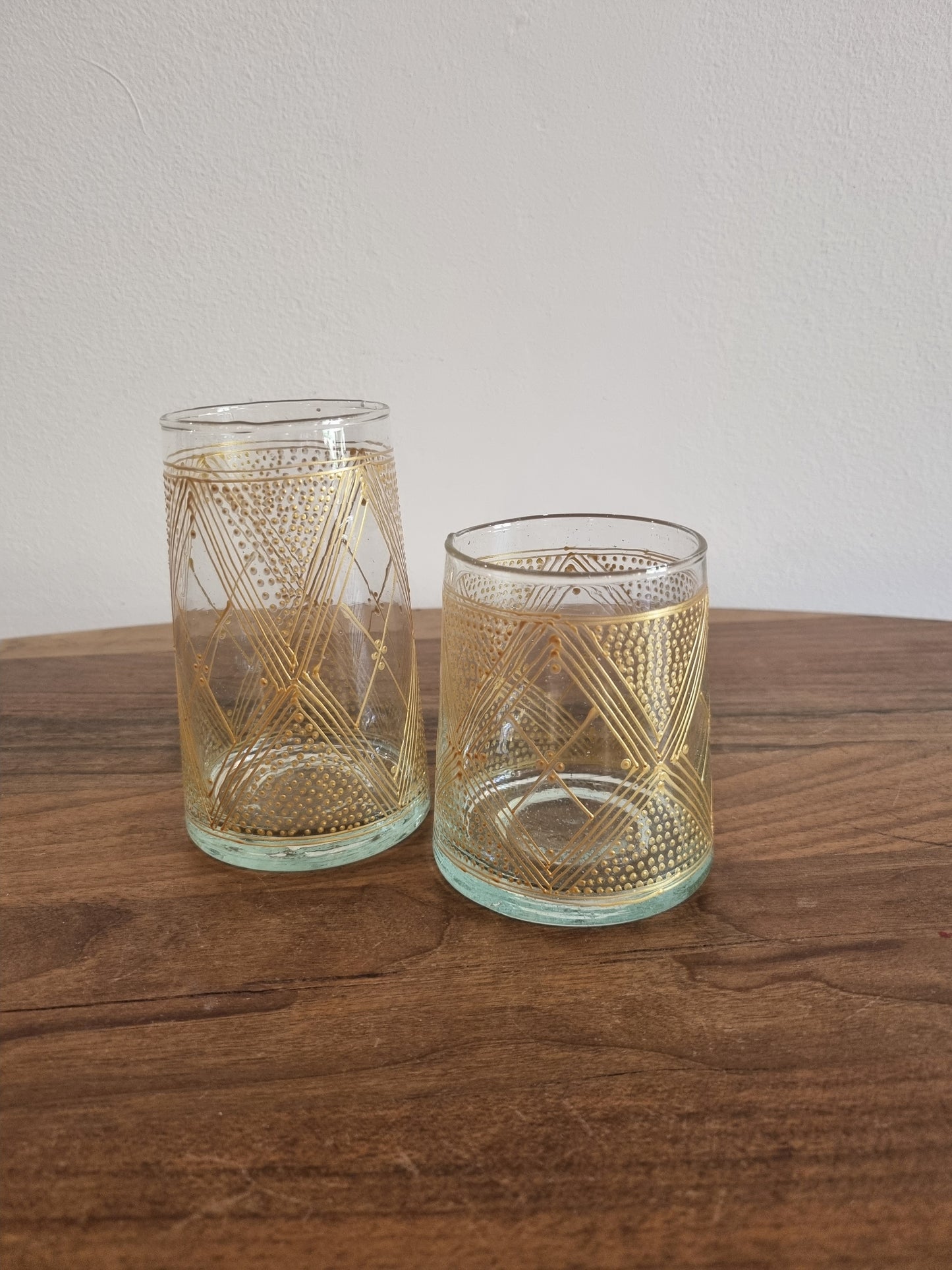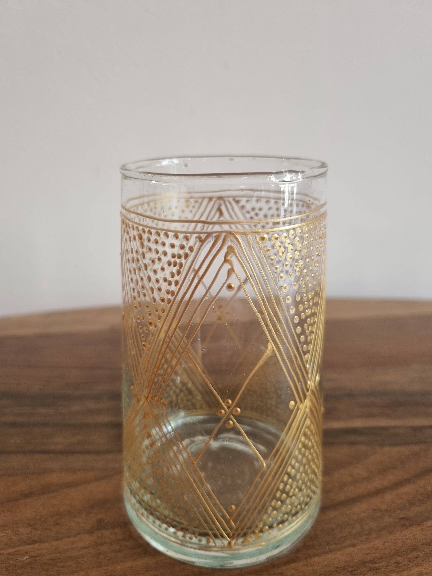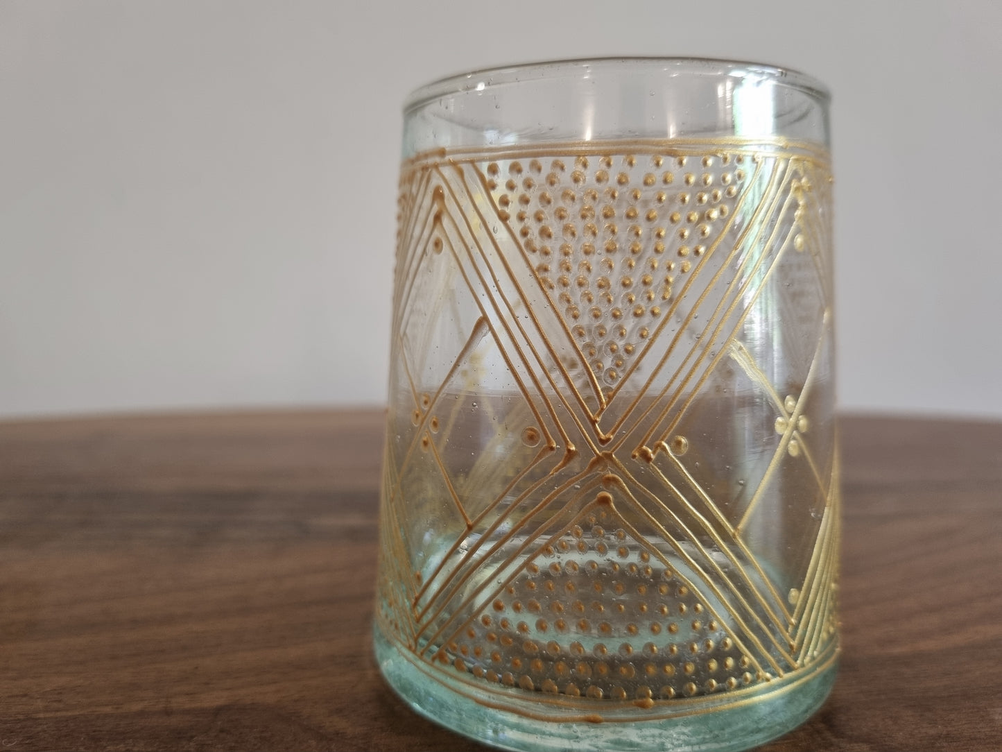 Verre a the beldi peint à la main à la main au Maroc soufflé à la bouche . Verre recyclé et soufflés à la bouche.