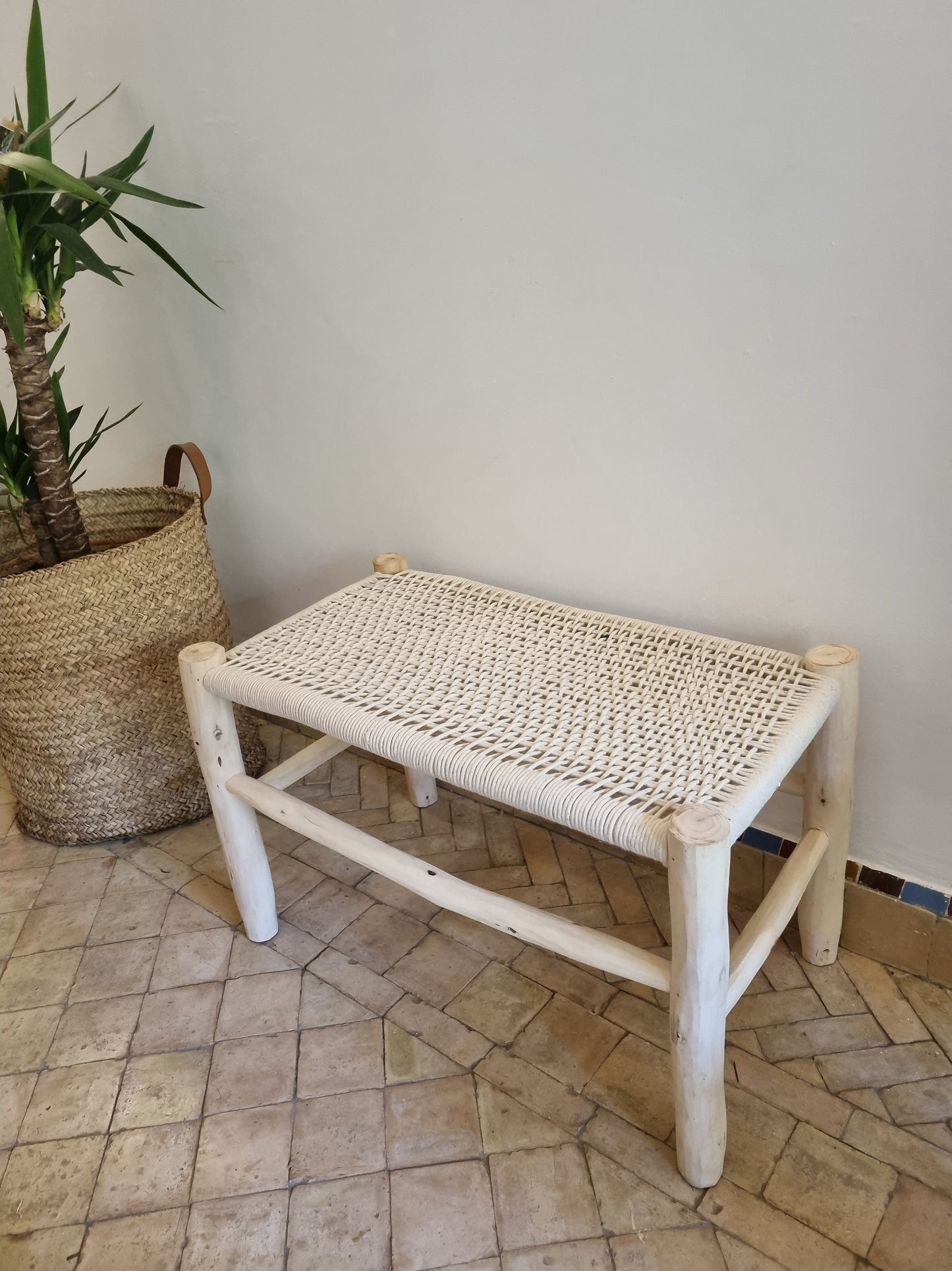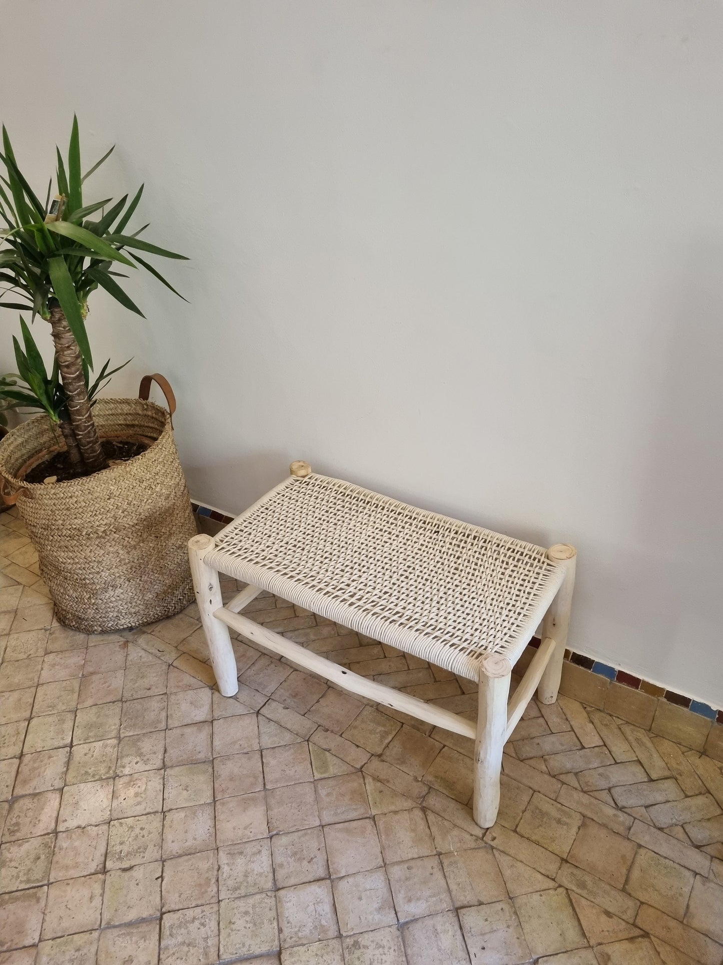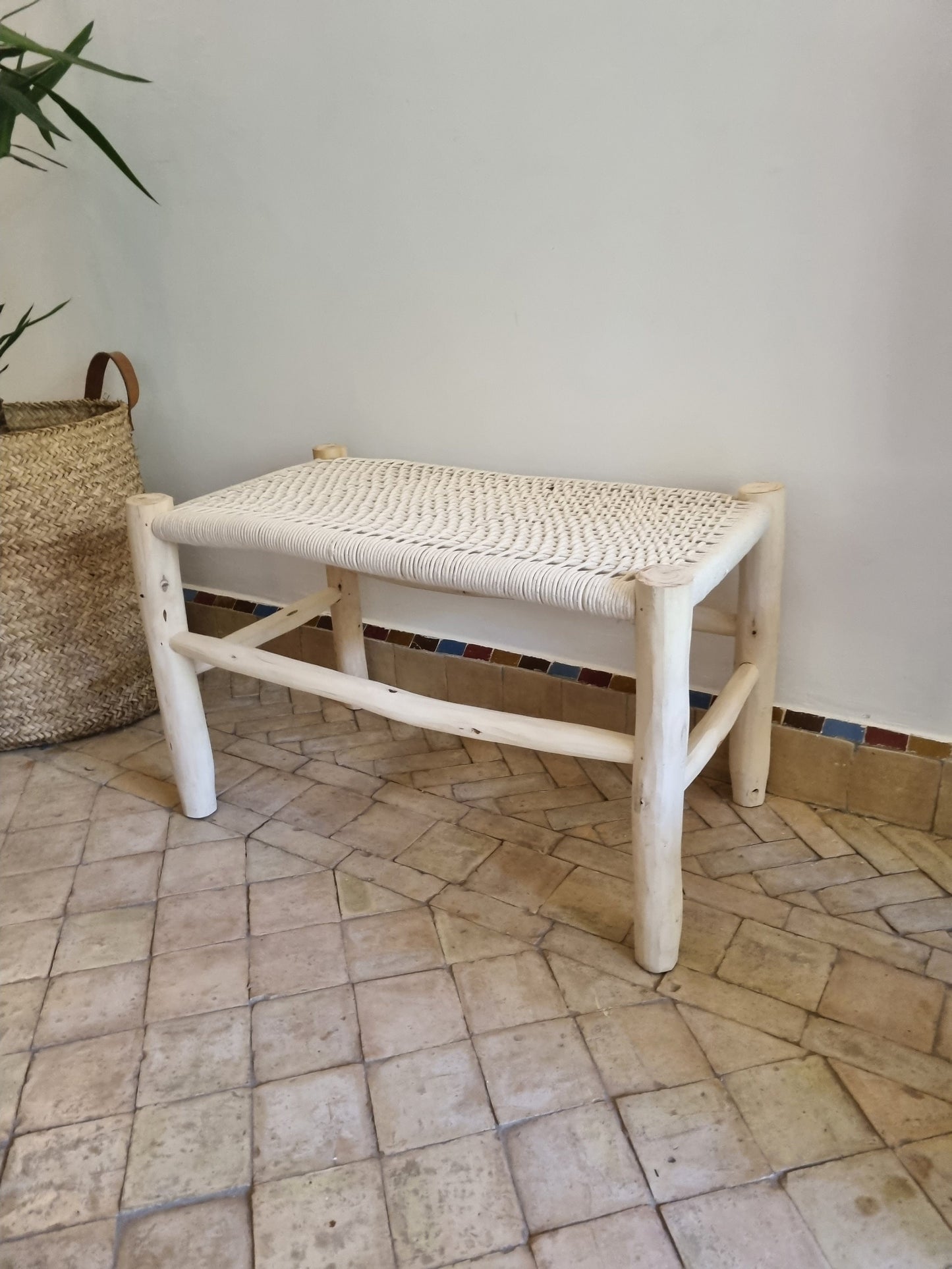 Meuble tv bois massif est fabriqué en bois massif et tressage de corde naturelle, créant un design traditionnel marocain de "banc beldi" le banc beldi est indispensable pour une décoration bohème chic. Utilisez le également en bout de lit dans la chambre