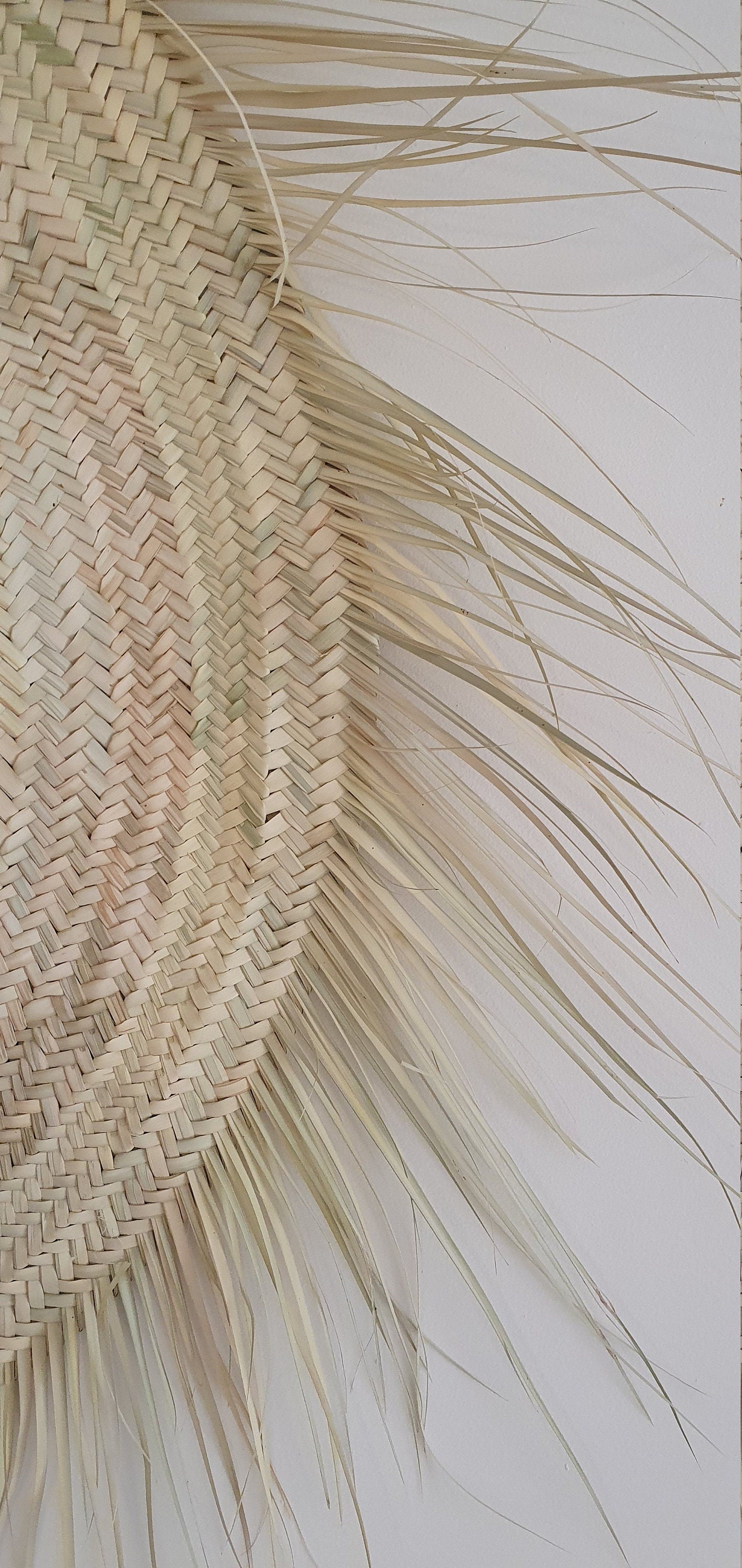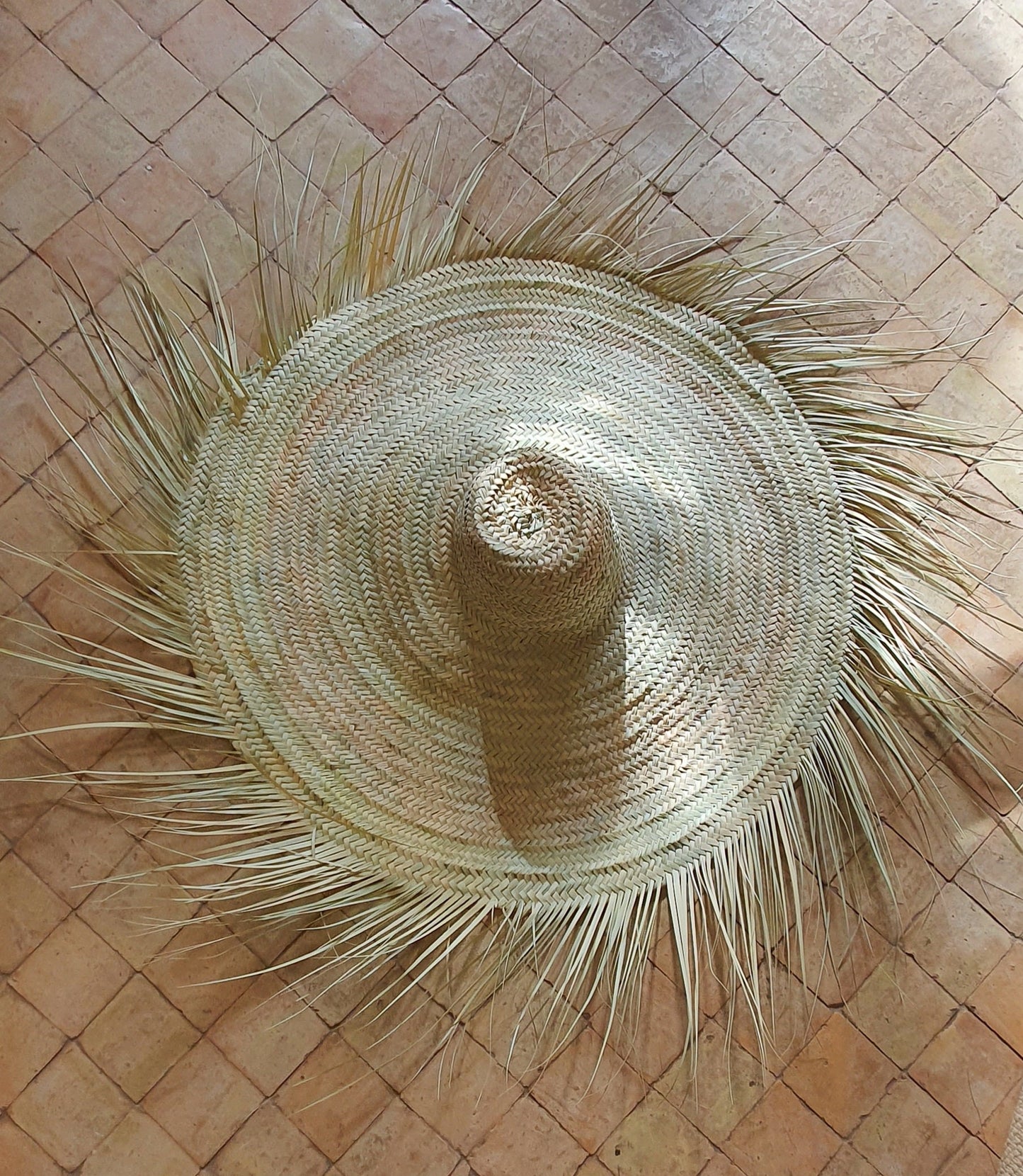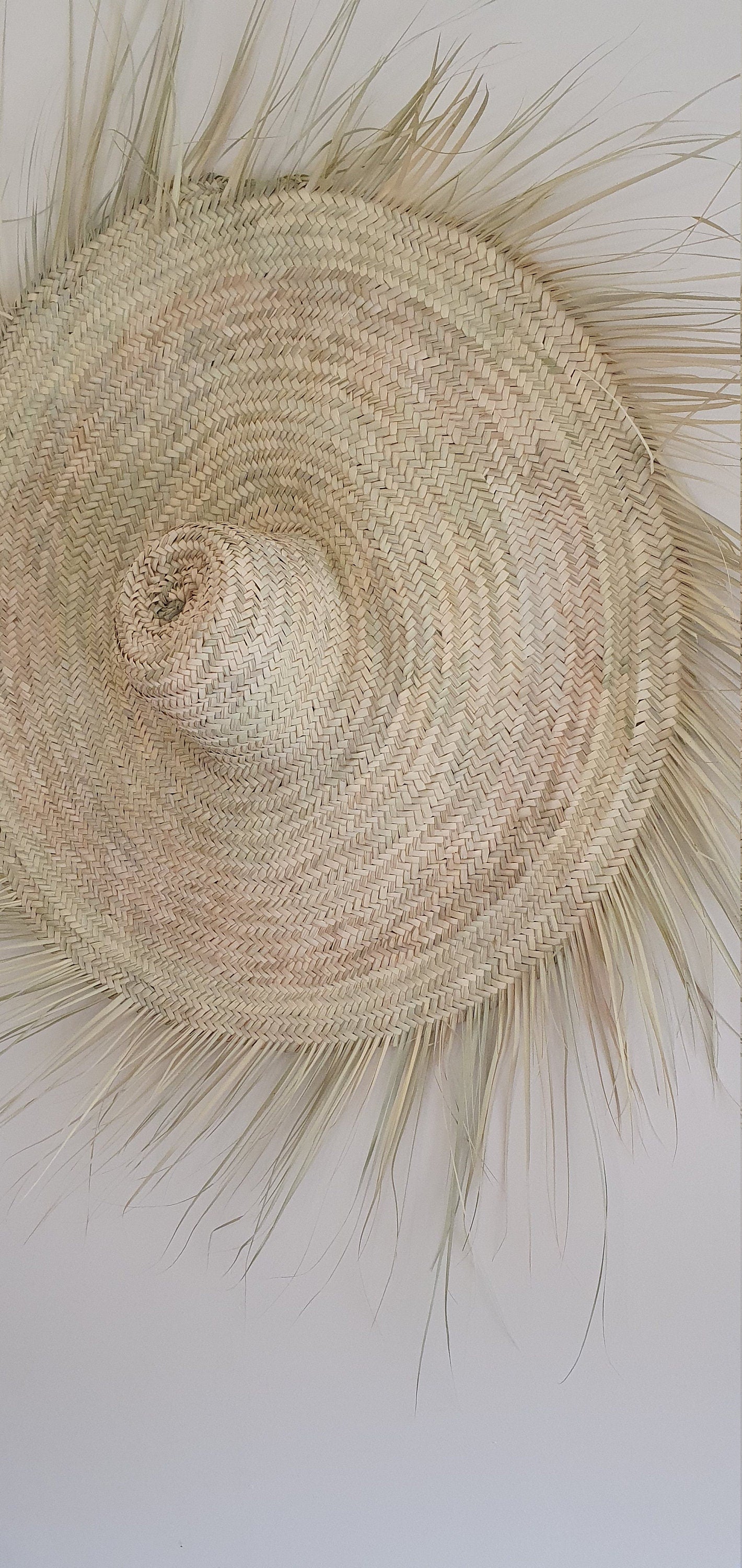 Chapeau de paille décoration murale ceci est fait à la main chaque piece est unique. Les Couleurs et les tailles peuvent varier en de l'état du Matériau. La couleur est souvent verte quand la matière est jeune et devient de plus en plus jaune avec le temps.