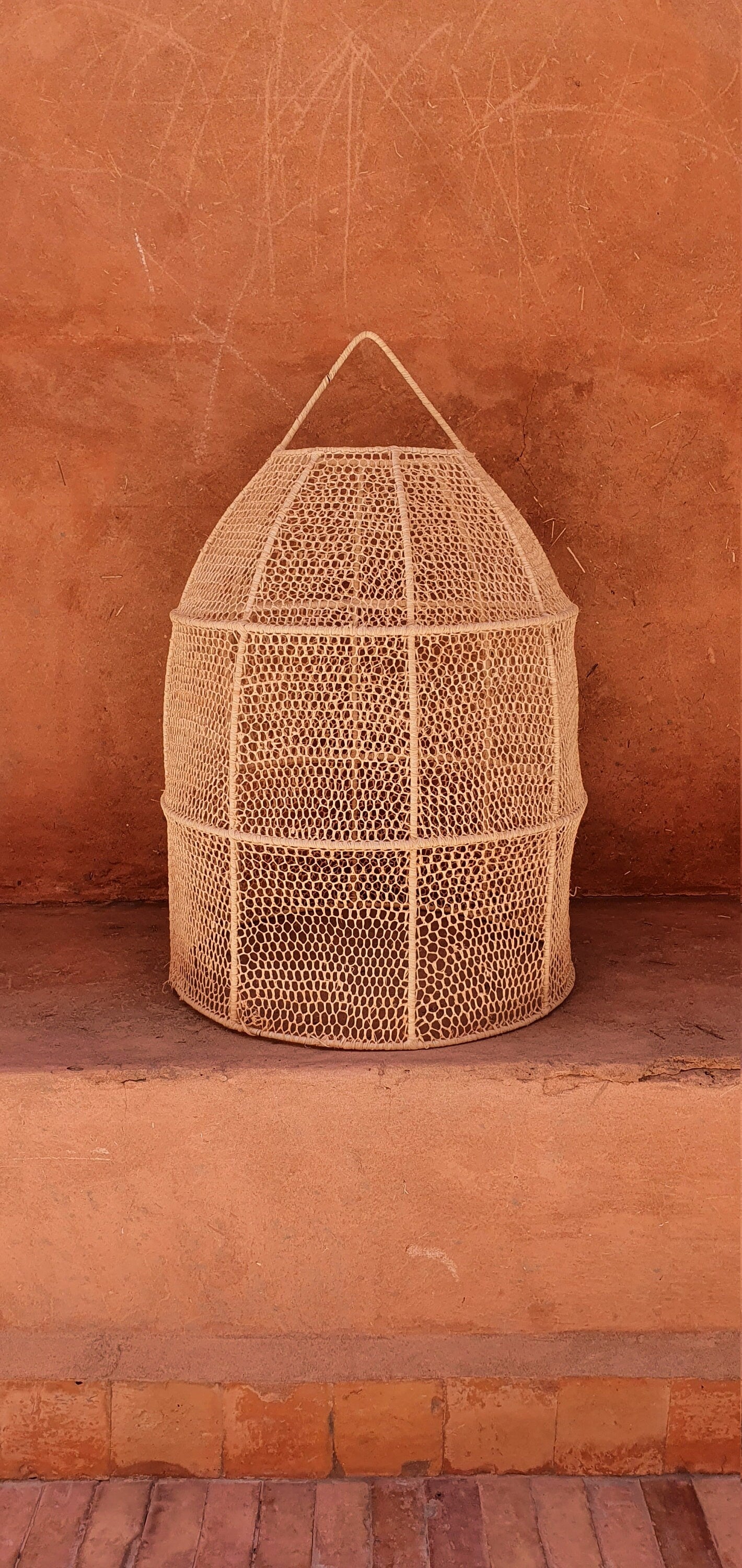 Ceci est fait à la main, Suspension luminaire cloche raphia chaque piece est unique. Les Couleurs et les tailles peuvent varier en de l'état du Matériau.  La couleur est souvent verte quand la matière est jeune et devient de plus en plus jaune avec le temps