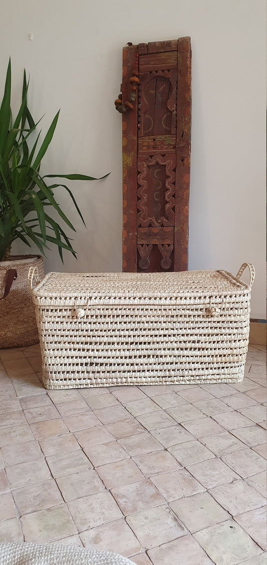 Coffre en feuille de palmier en rangement osier 100* 50* 50 cm