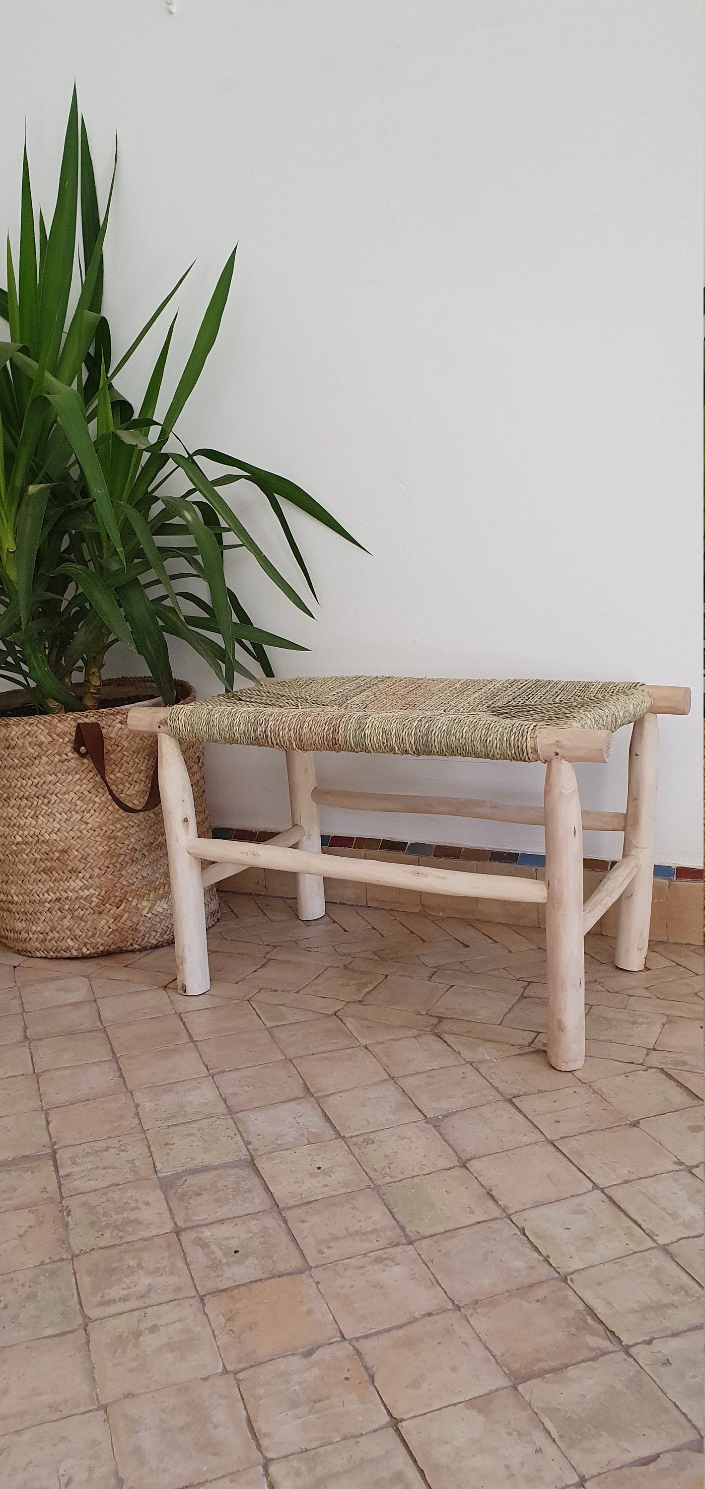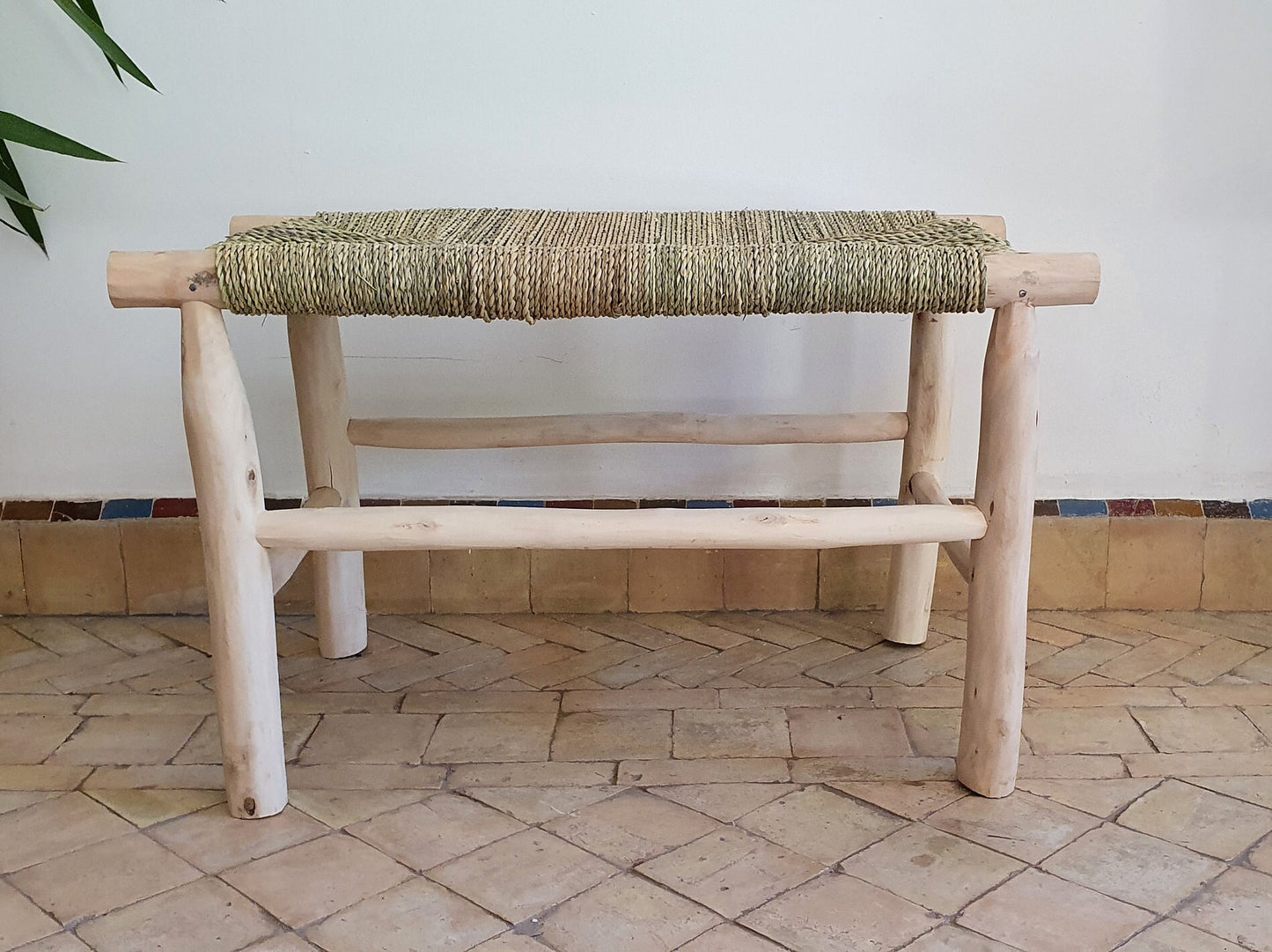 Banc Marocain En bois Massif Tressée Produits fait a la main, chaque pièce est unique. Les Couleurs et les tailles peuvent varier. Vous pouvez placer le banc à L'extérieur s'il est couvert. Si vous avez besoin d'une taille fixée, Nous pouvons certain traiter cette demande