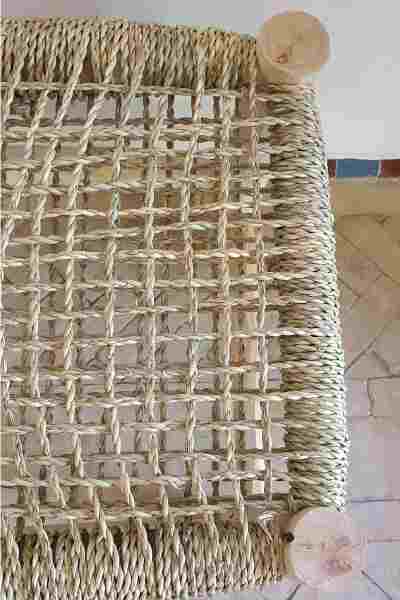 Banc en bois massif et tressage naturel