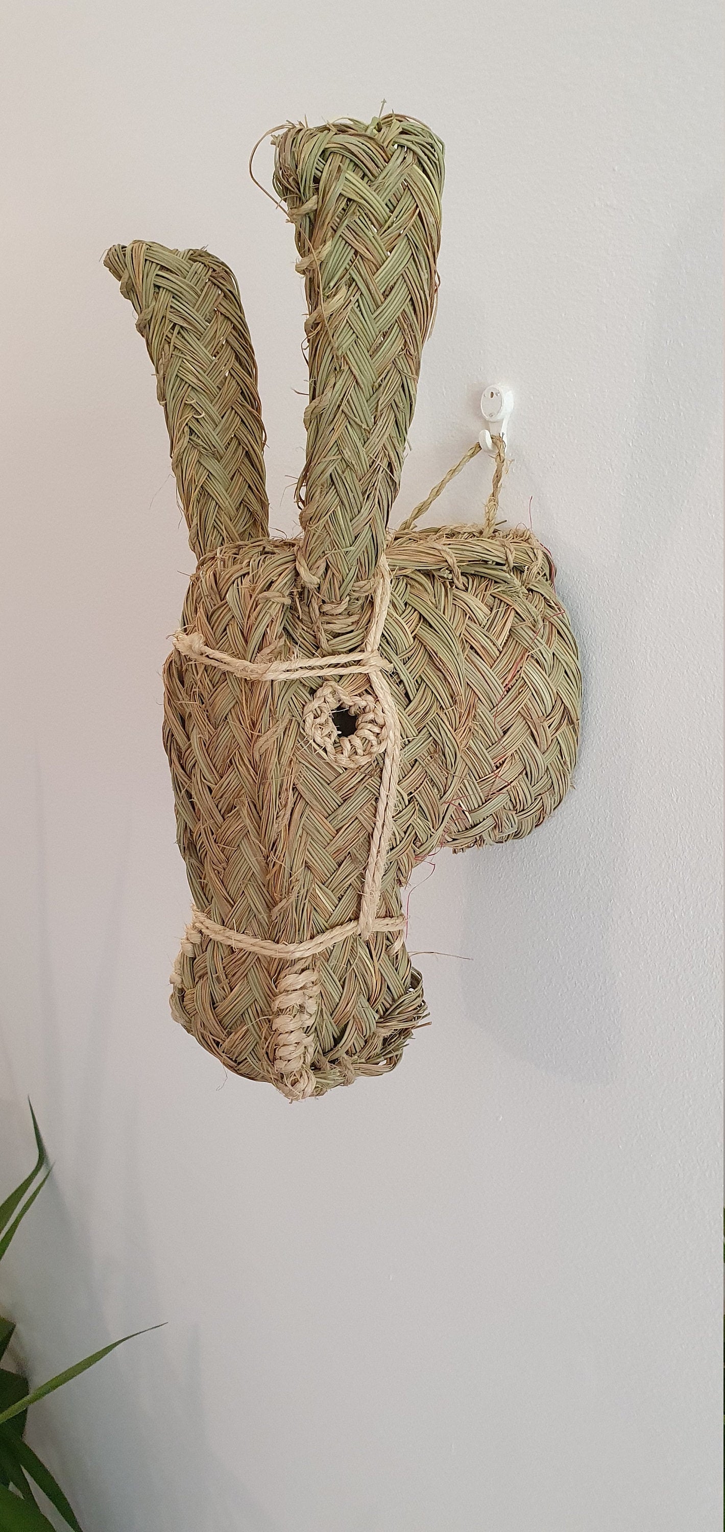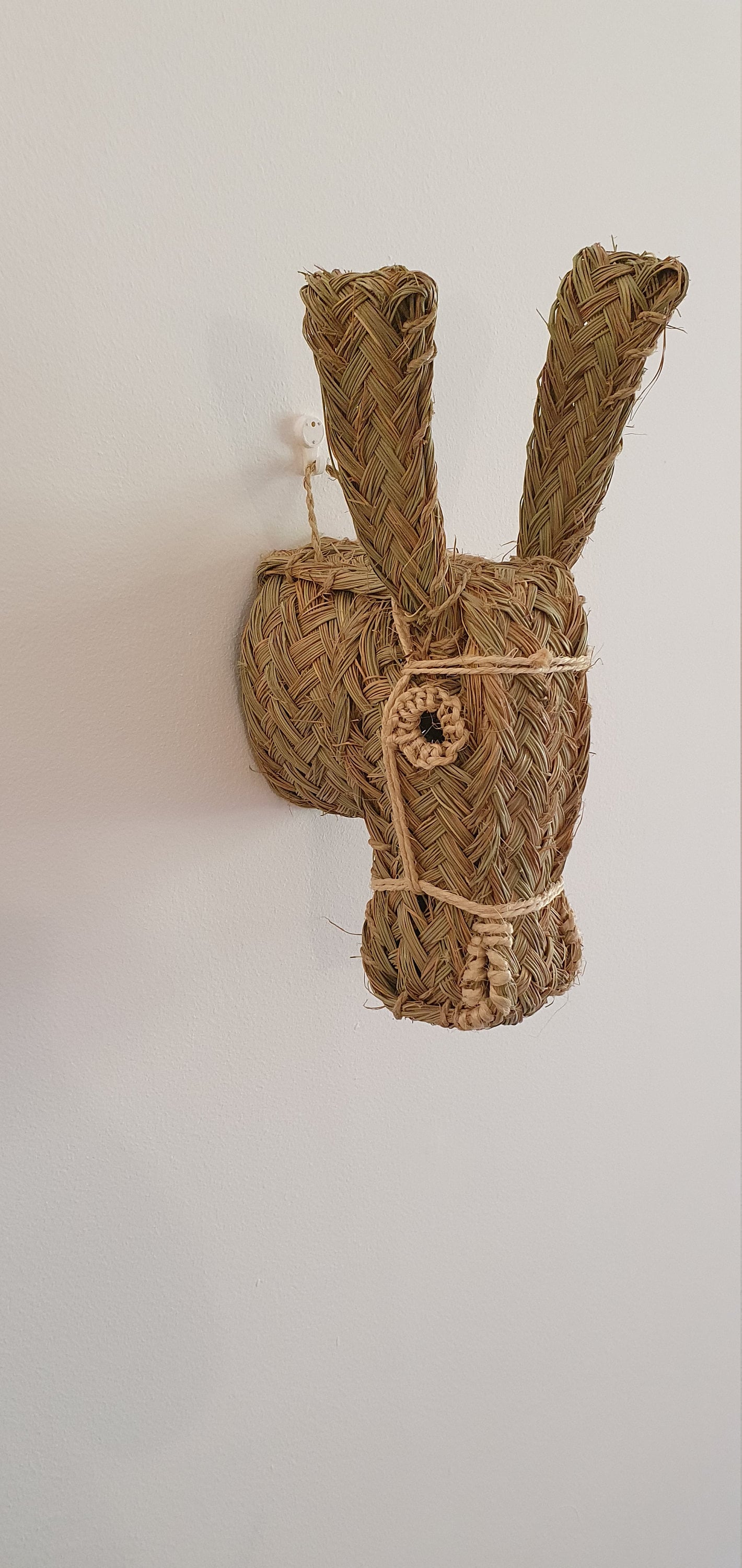 Tête tressée à la main au Maroc , matière totalement naturelle, pour égayer vos murs et apporter une touche originale et chaleureuse à votre intérieur .  Animal mural Tête d'Âne elle trouve sa place dans un salon, une chambre, d'enfant ou d'adulte, ou une entrée