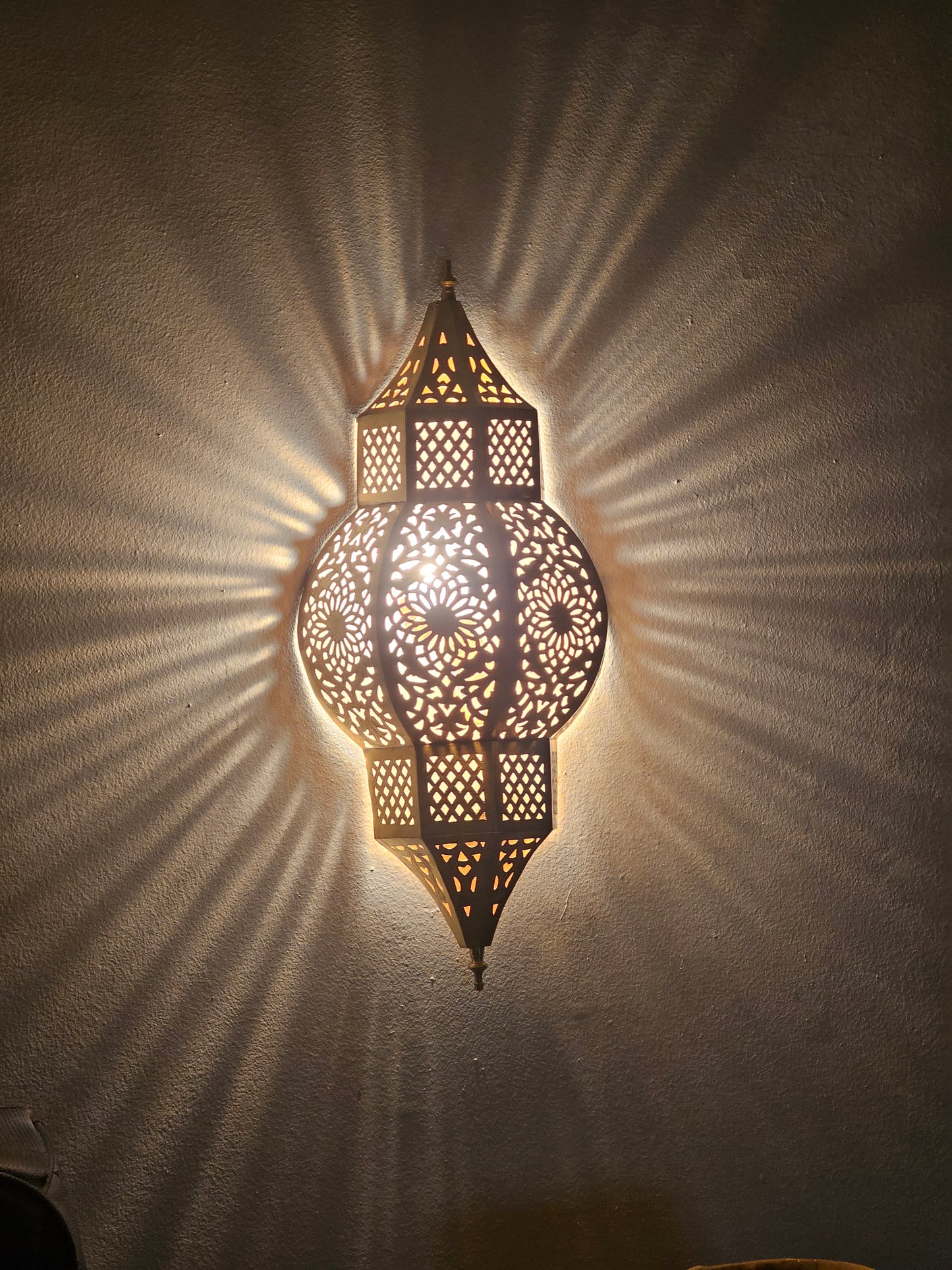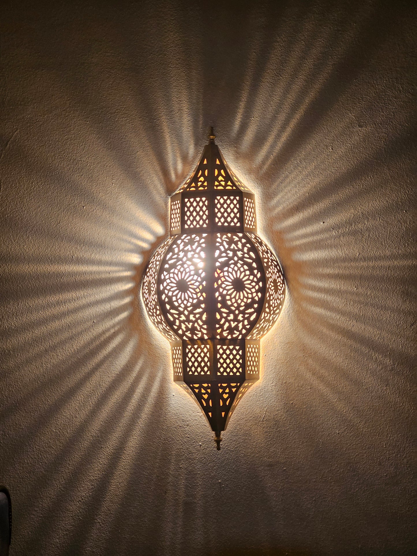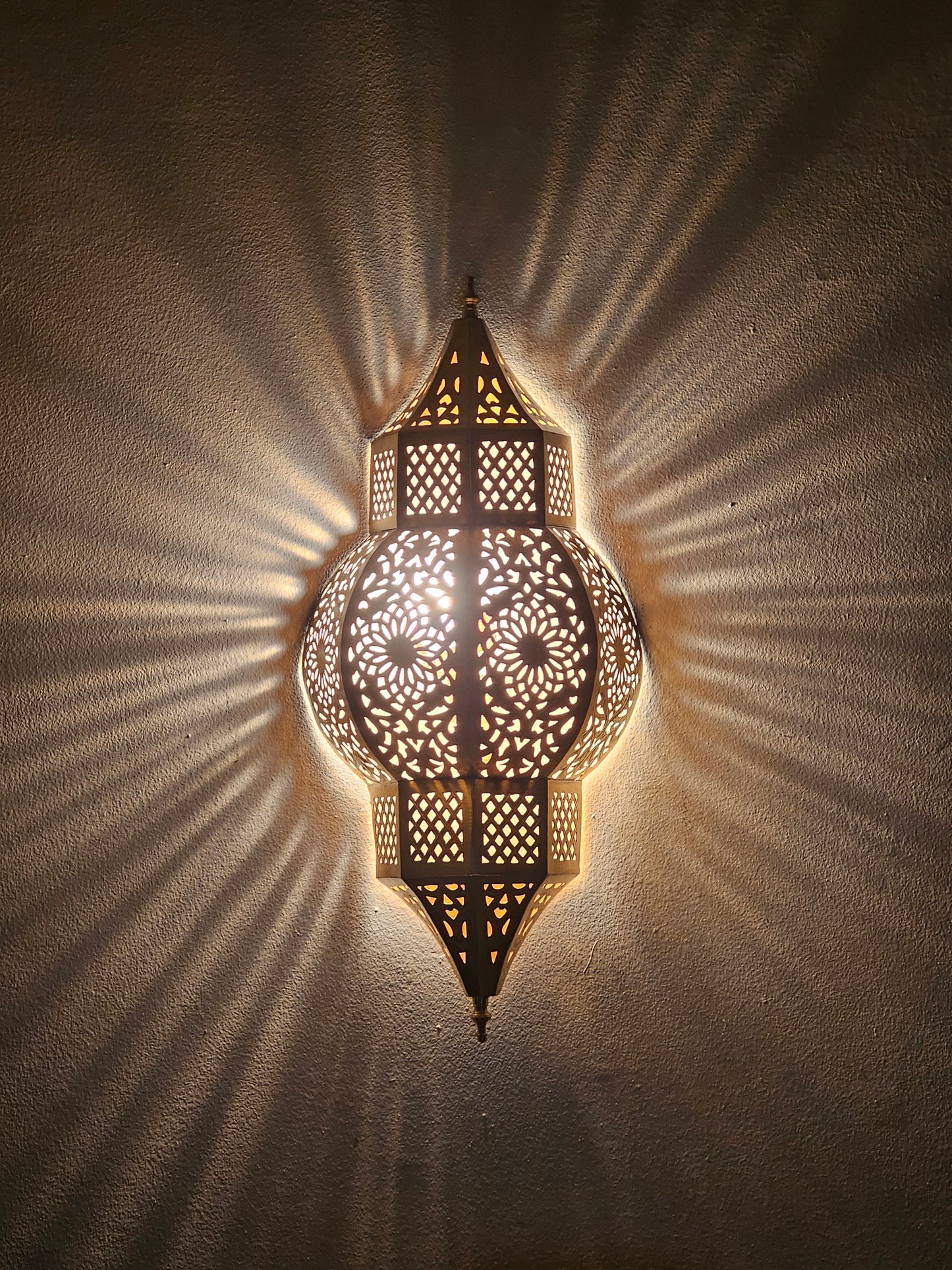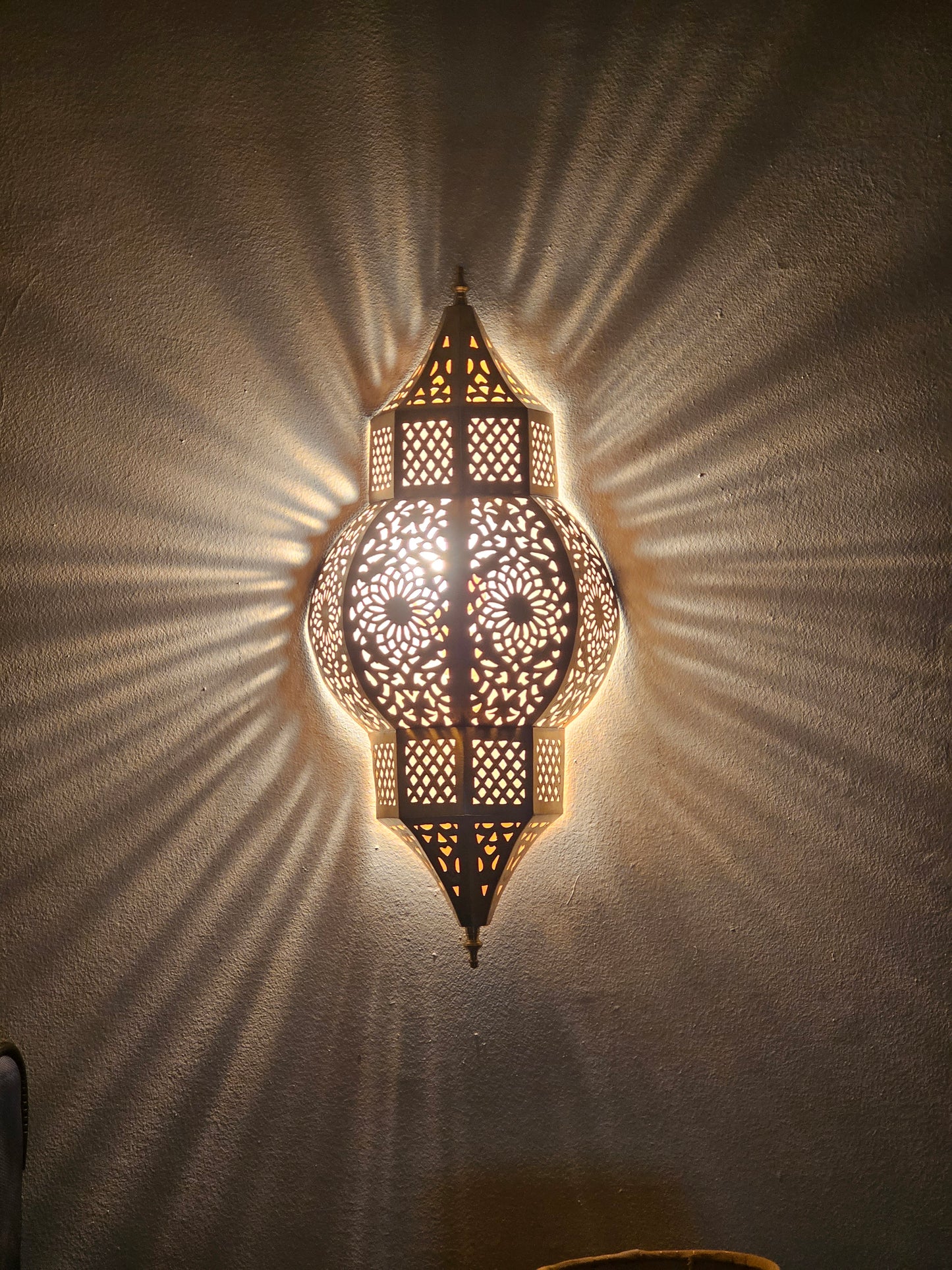 Cette applique murale en laiton est fabriquée au Maroc, alliant artisanat traditionnel et design contemporain. Son élégance réside dans ses lignes épurées et sa finition soignée, ajoutant une touche de sophistication à tout espace.