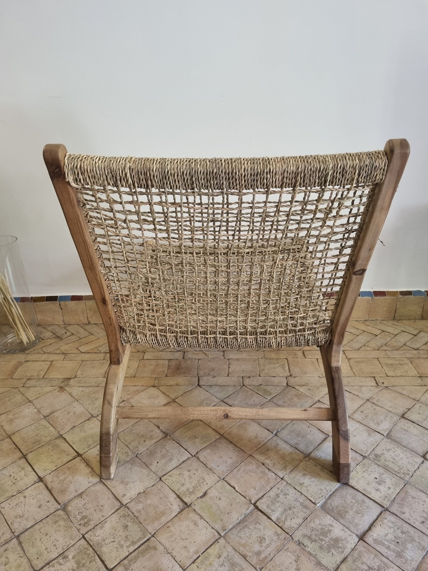 Fauteuil en noyer produit fabriqué de manière artisanale, chaque pièce est unique. De légères variations de coloris et de tailles peuvent survenir (+/- 7cm). Peut être placé en extérieur couvert.