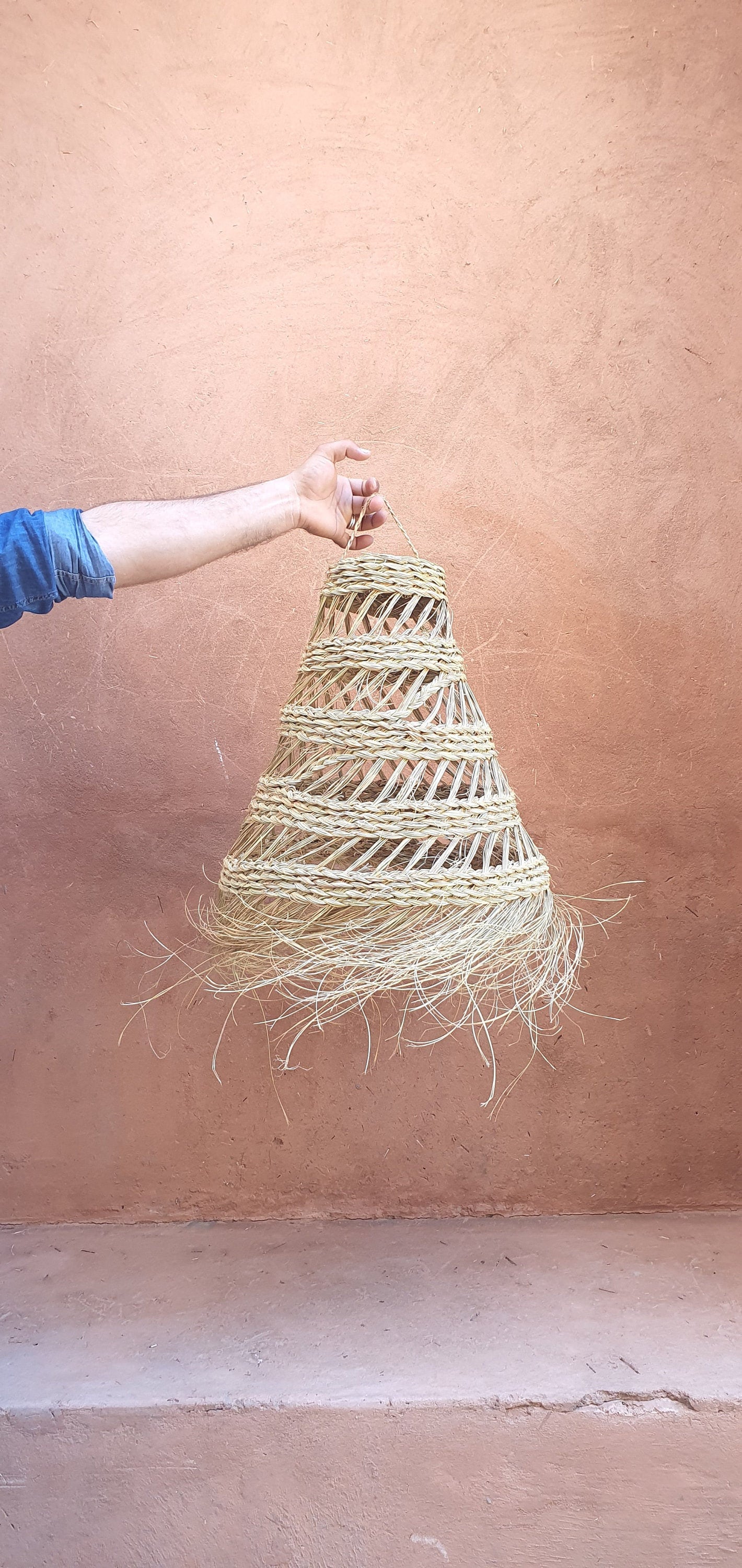 Lampe osier suspension en fibre naturelle tressée cone. Belle finition pour un produit bohème chic de qualité, il ira à merveille dans votre intérieur ou extérieur. Les franges en osier donnent un aspect irrégulier et très naturel.