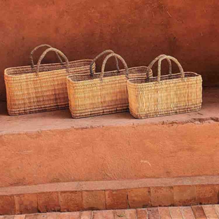 Panier osier rectangulaire anses en doum -Libitii Shop