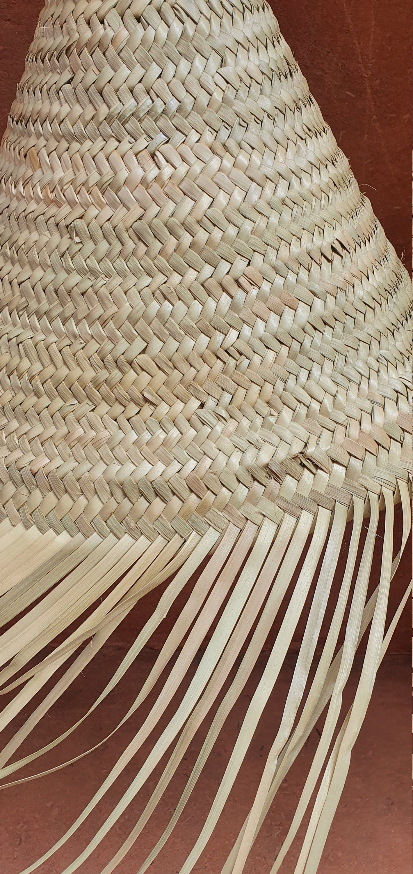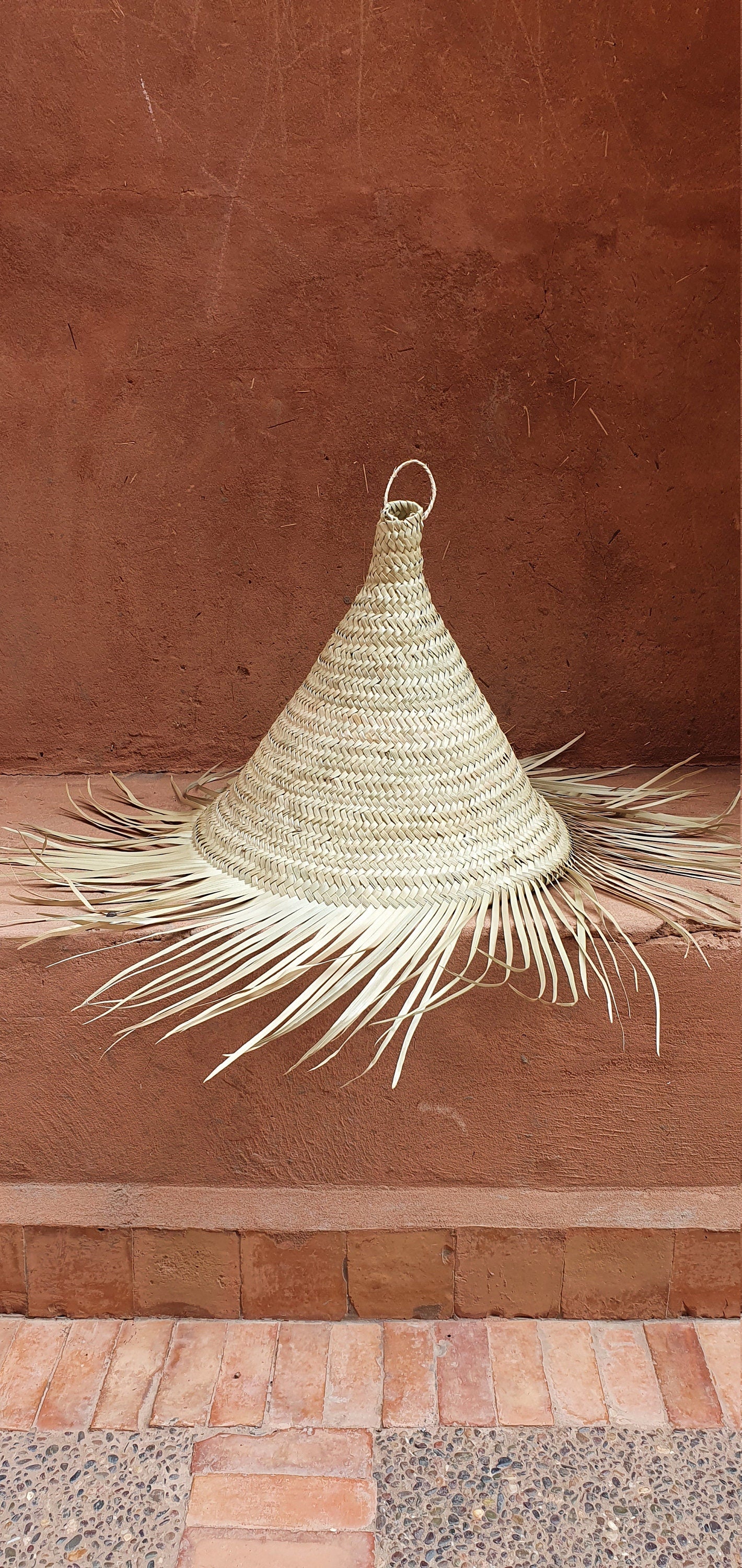 La Suspension bohème paille cone en osier en feuille de palmier matériau brut et authentique pour un esprit bohème. Fait main, cet abat-jour en fibres naturelles est à suspendre au plafond grâce à la anse. Les tons doux et les franges apportent le côté chaleureux et original dans la pièce.
