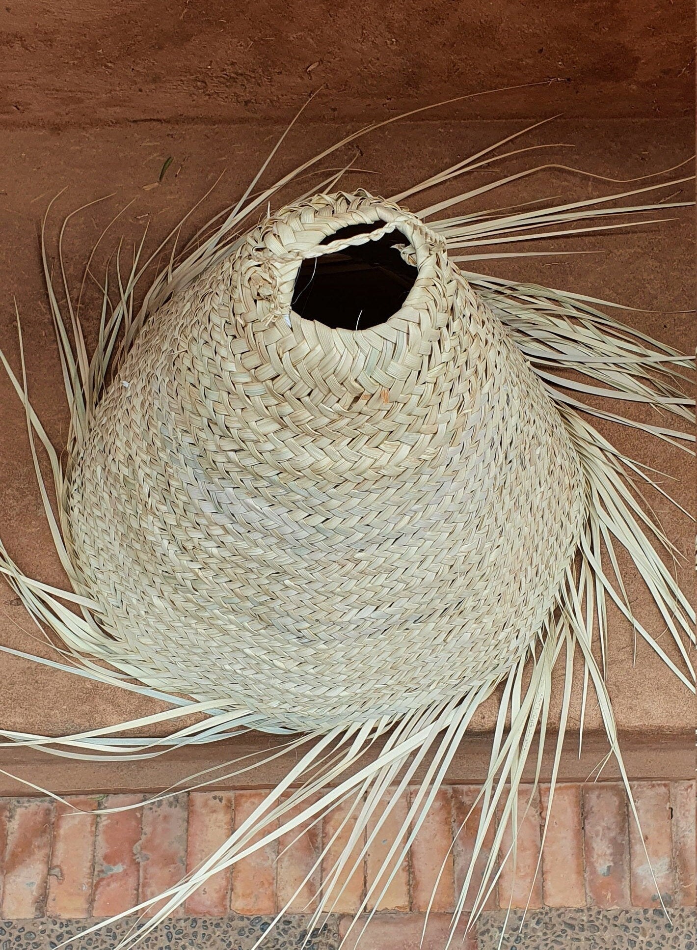 Ceci est fait à la main, Suspension en paille chaque piece est unique. Les Couleurs et les tailles peuvent varier en de l'état du Matériau. La couleur est souvent verte quand la matière est jeune et devient de plus en plus jaune avec le temps