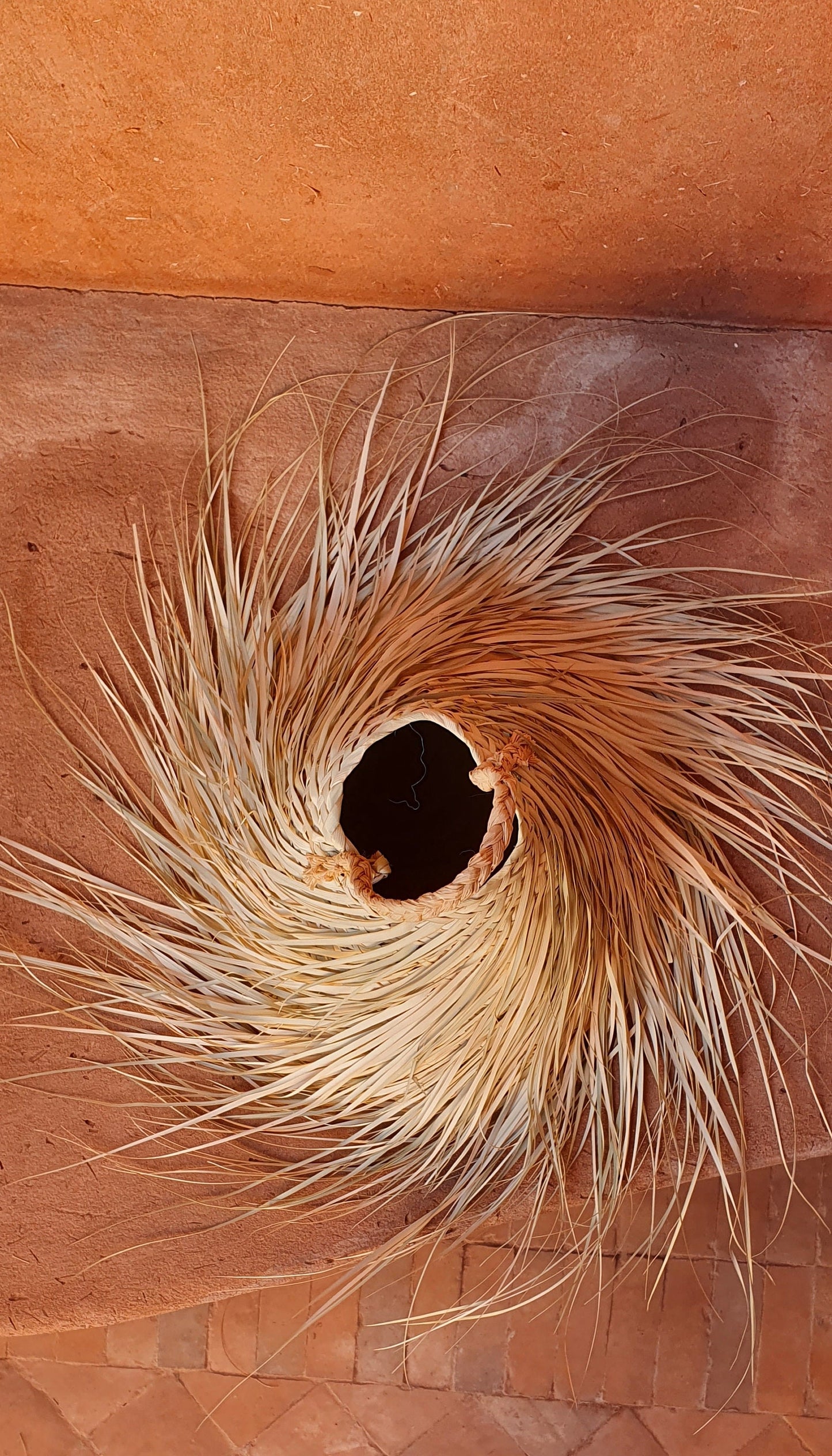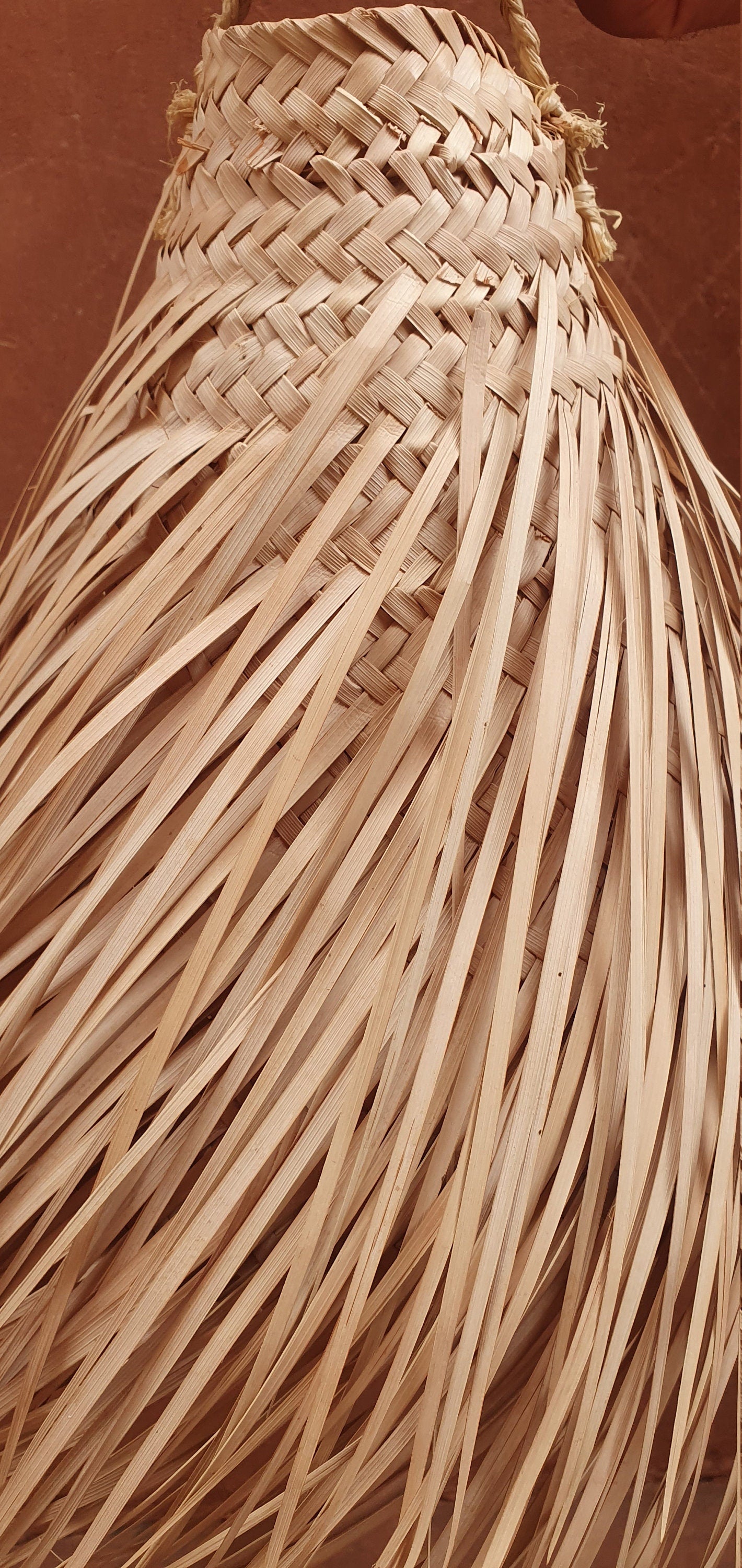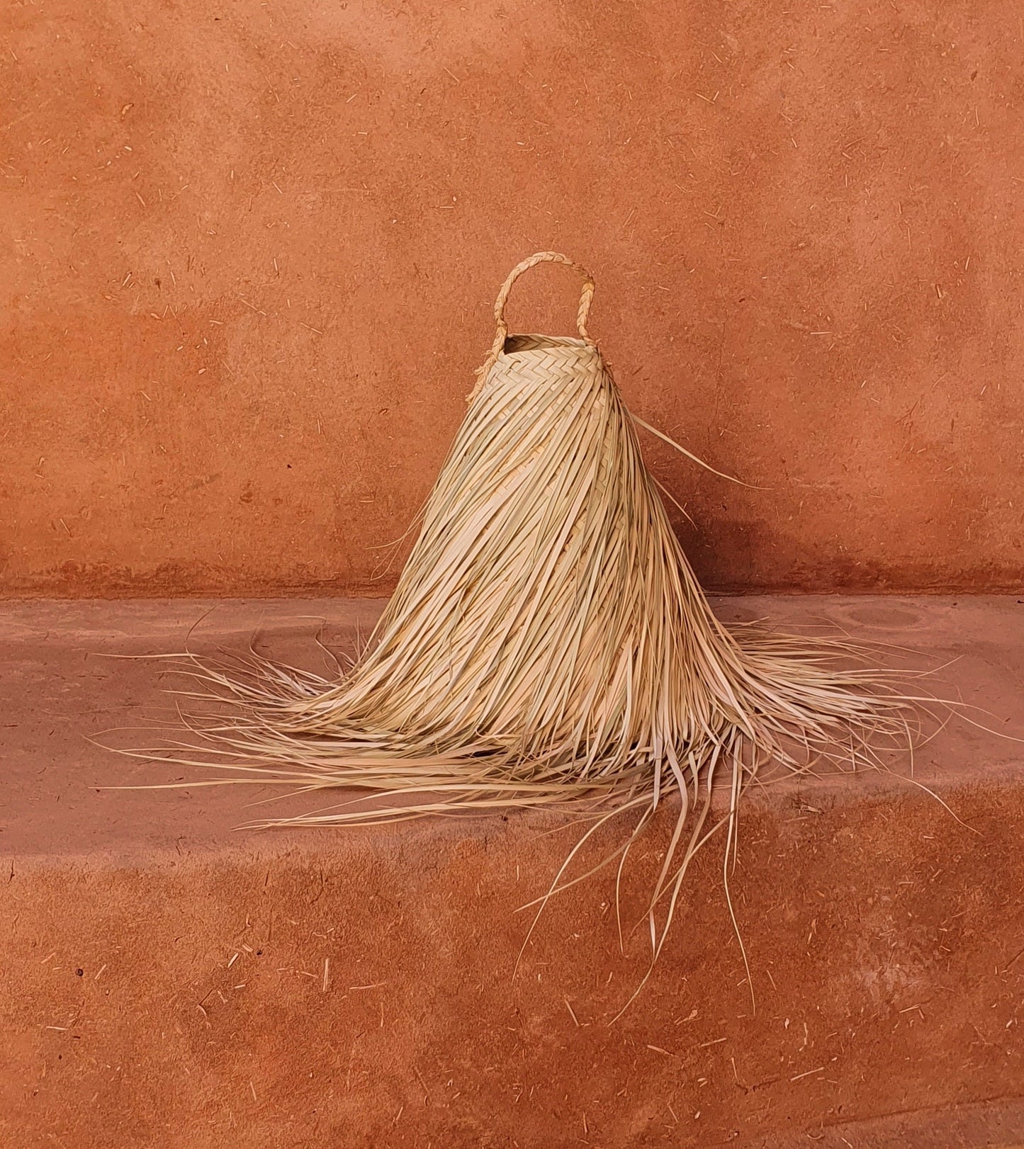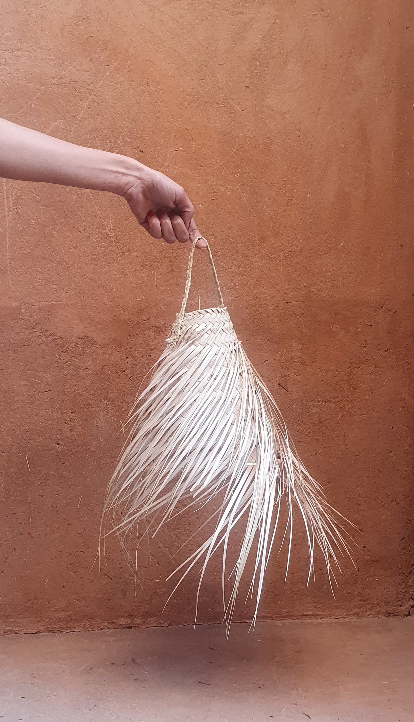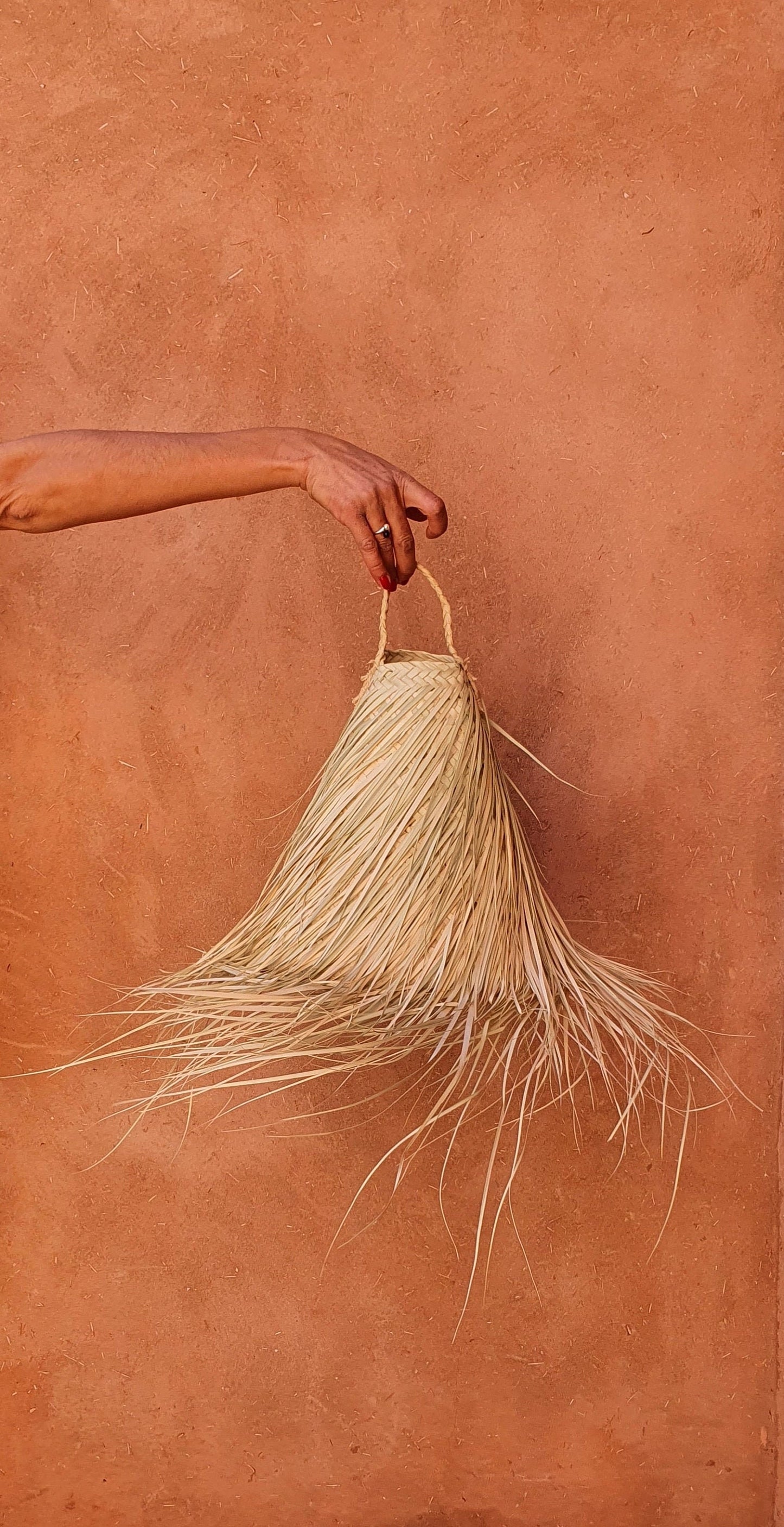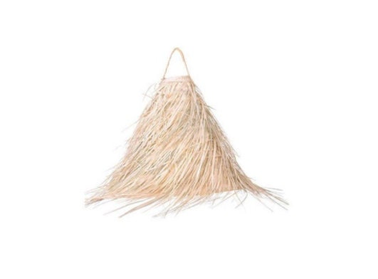 Ceci est fait à la main, Suspension en fibre végétale paille chaque piece est unique. Les Couleurs et les tailles peuvent varier en de l'état du Matériau. La couleur est souvent verte quand la matière est jeune et devient de plus en plus jaune avec le temps.