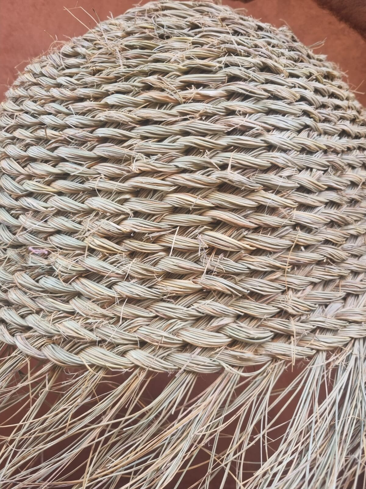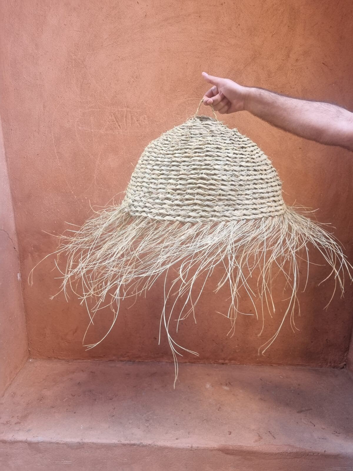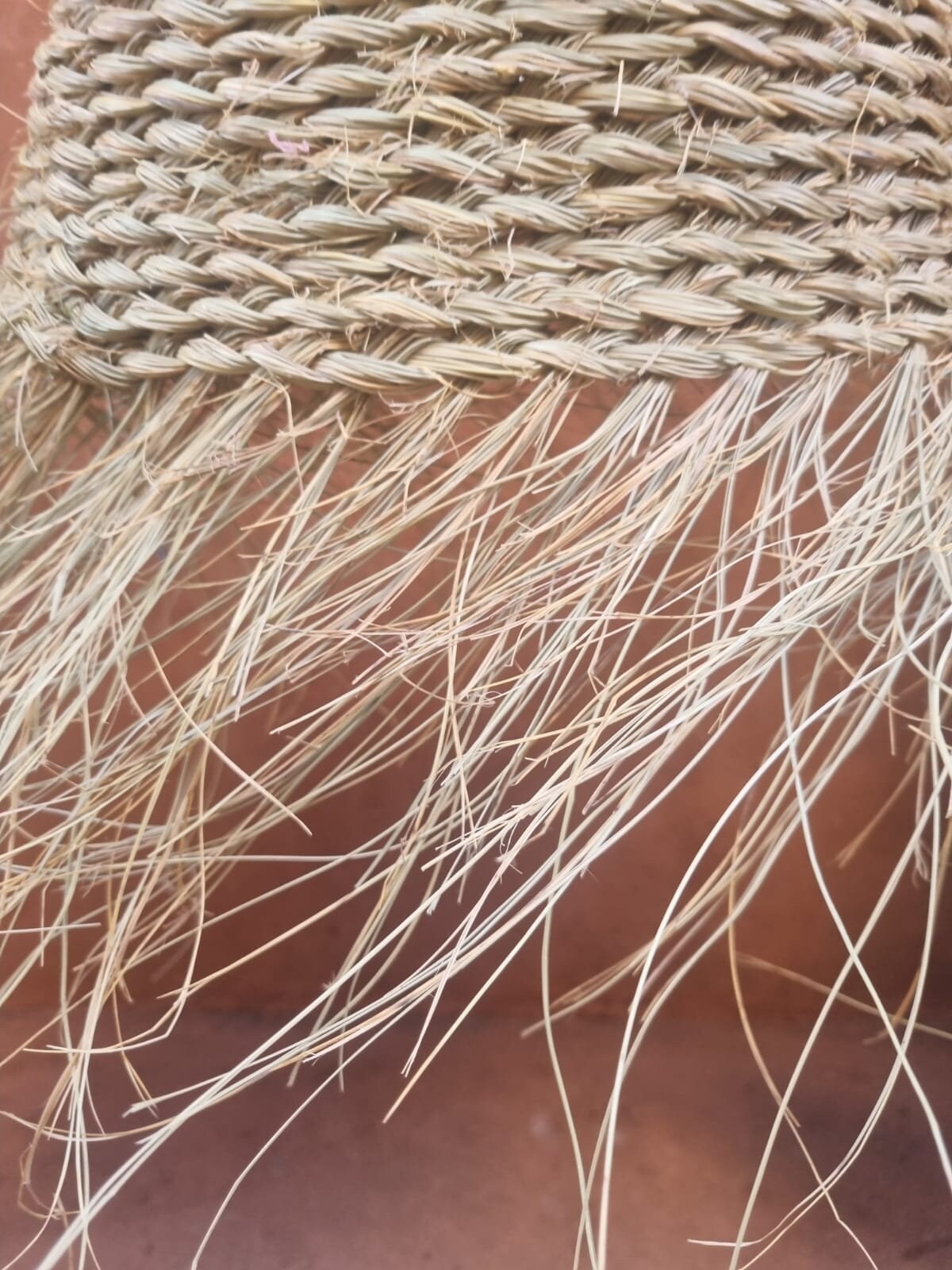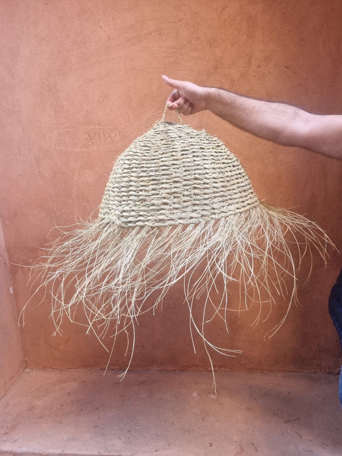 Ceci est fait à la main, suspension parasol à franges chaque piece est unique. Les Couleurs et les tailles peuvent varier en de l'état du Matériau.  La couleur est souvent verte quand la matière est jeune et devient de plus en plus jaune avec le temps.