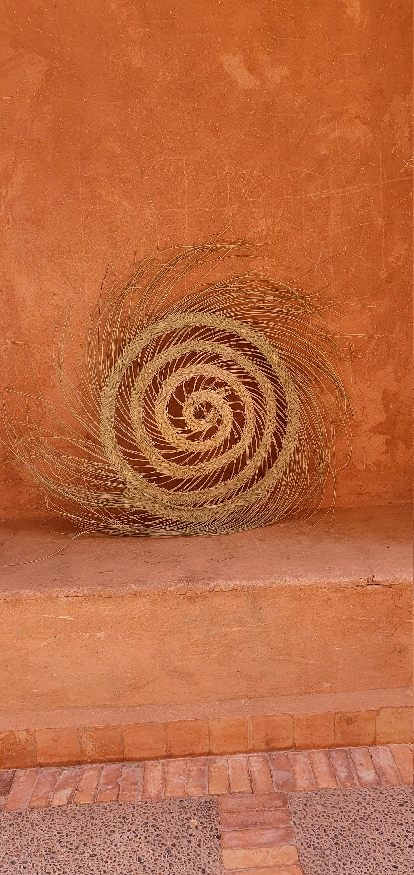 Mettre un peu Exotisme dans votre intérieur grâce Marocaine Suspension parasol paille grosse bandes tressées et cheveux d'anges fibres de Palmier Naturelles tissées.
