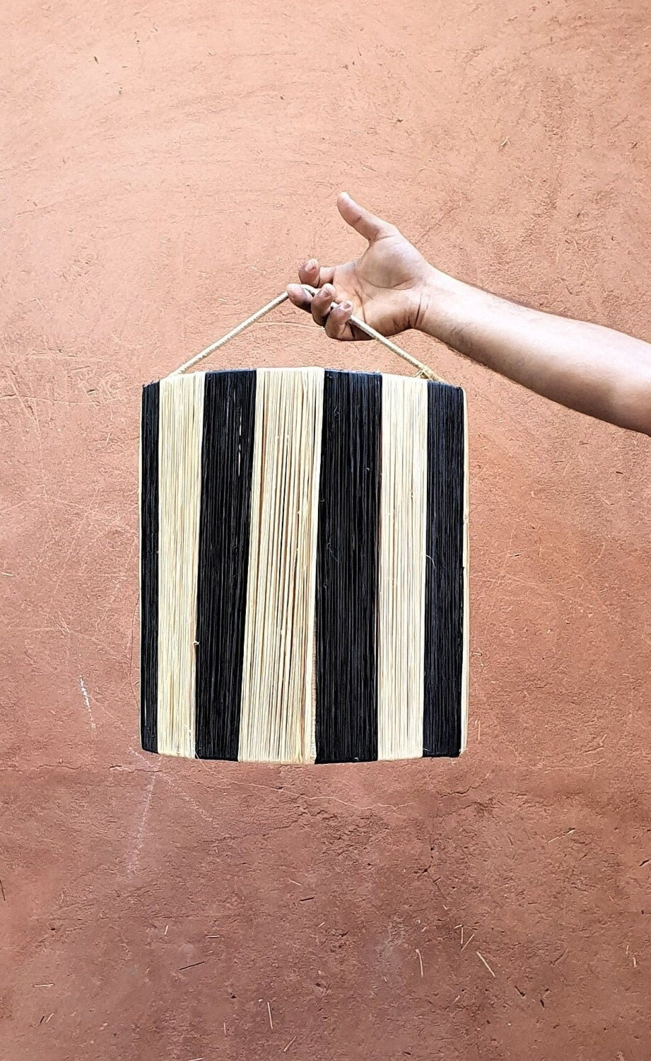 Ceci est fait à la main, suspension tressée en osier chaque piece est unique. Les Couleurs et les tailles peuvent varier en de l'état du Matériau. La couleur est souvent verte quand la matière est jeune et devient de plus en plus jaune avec le temps.