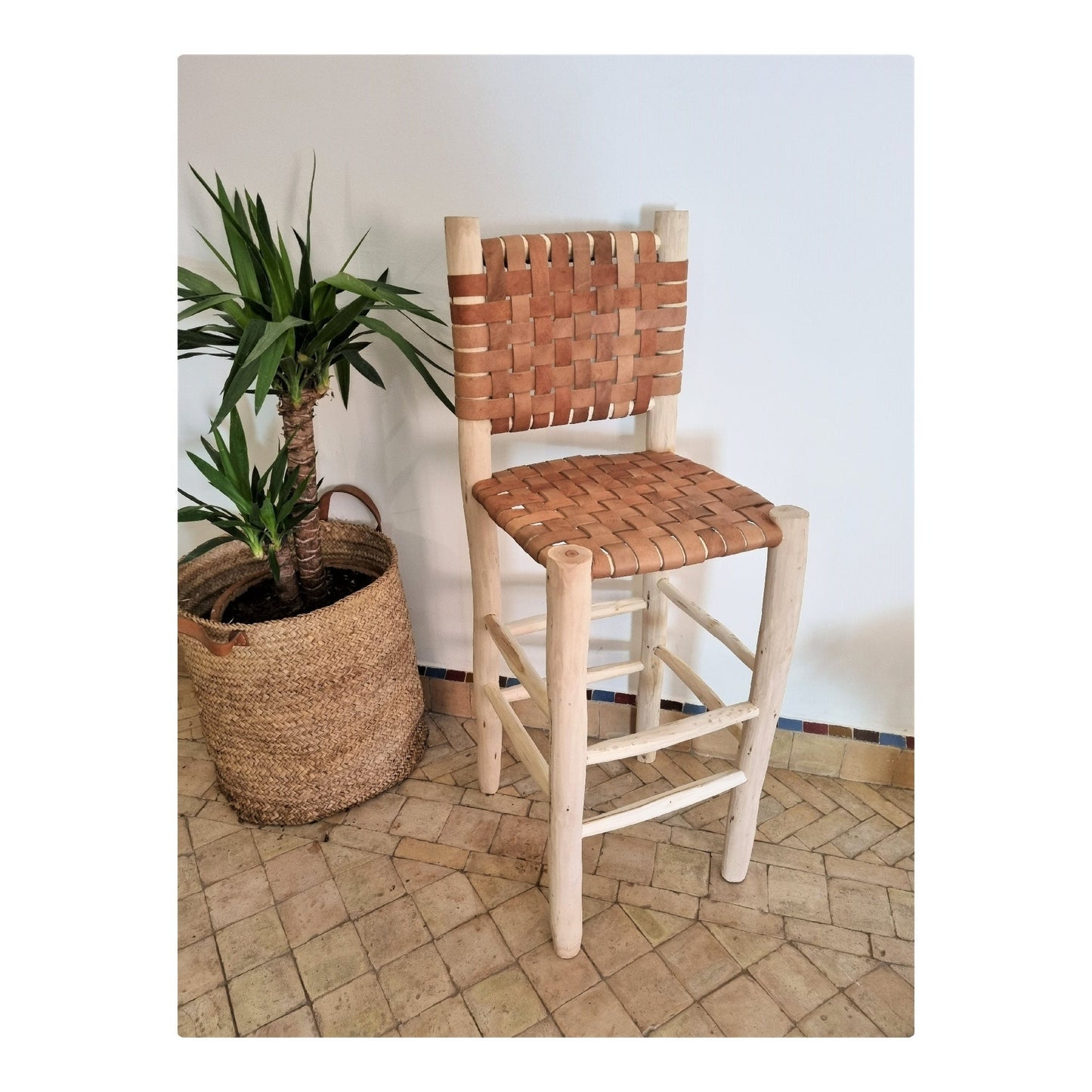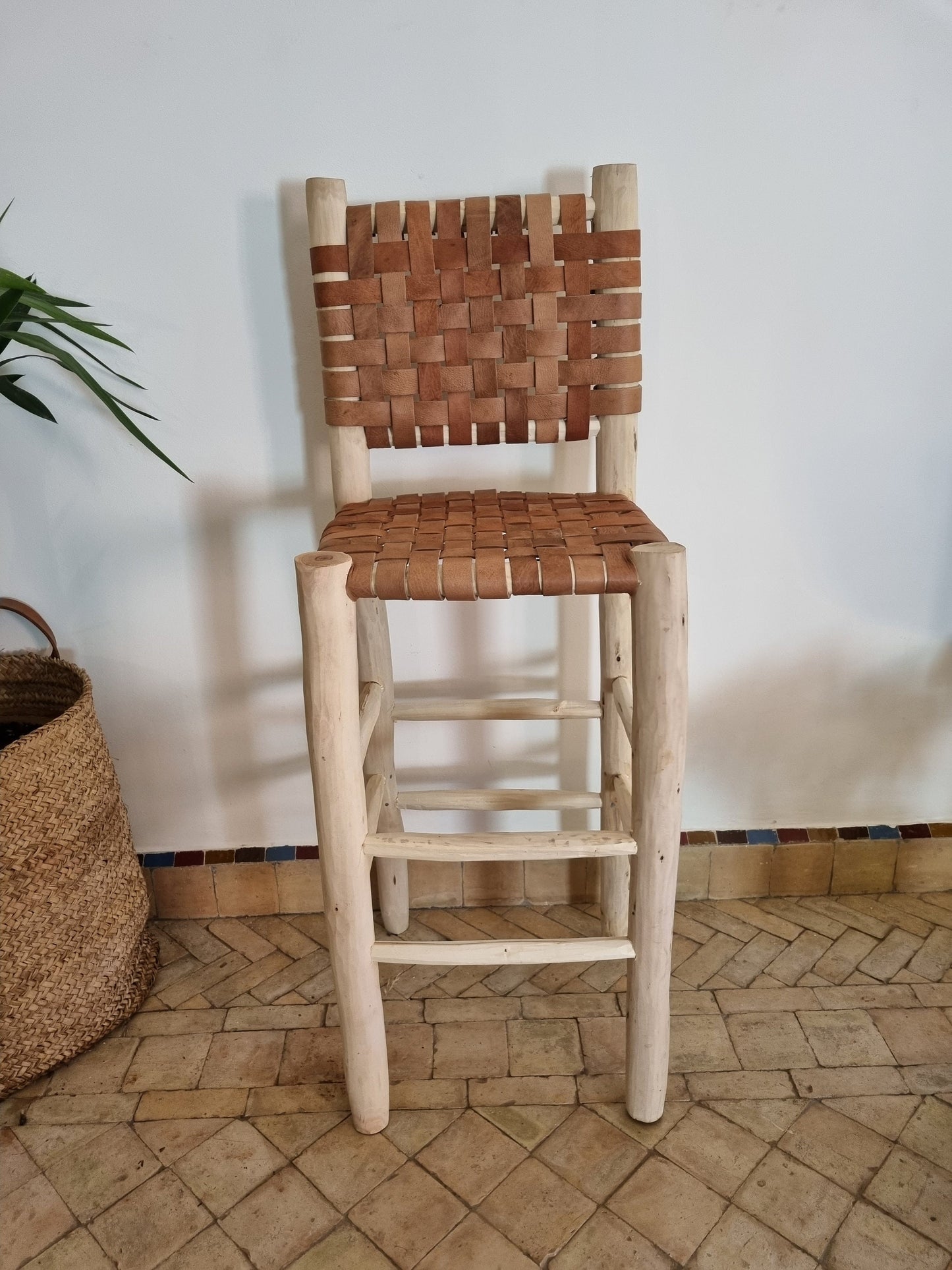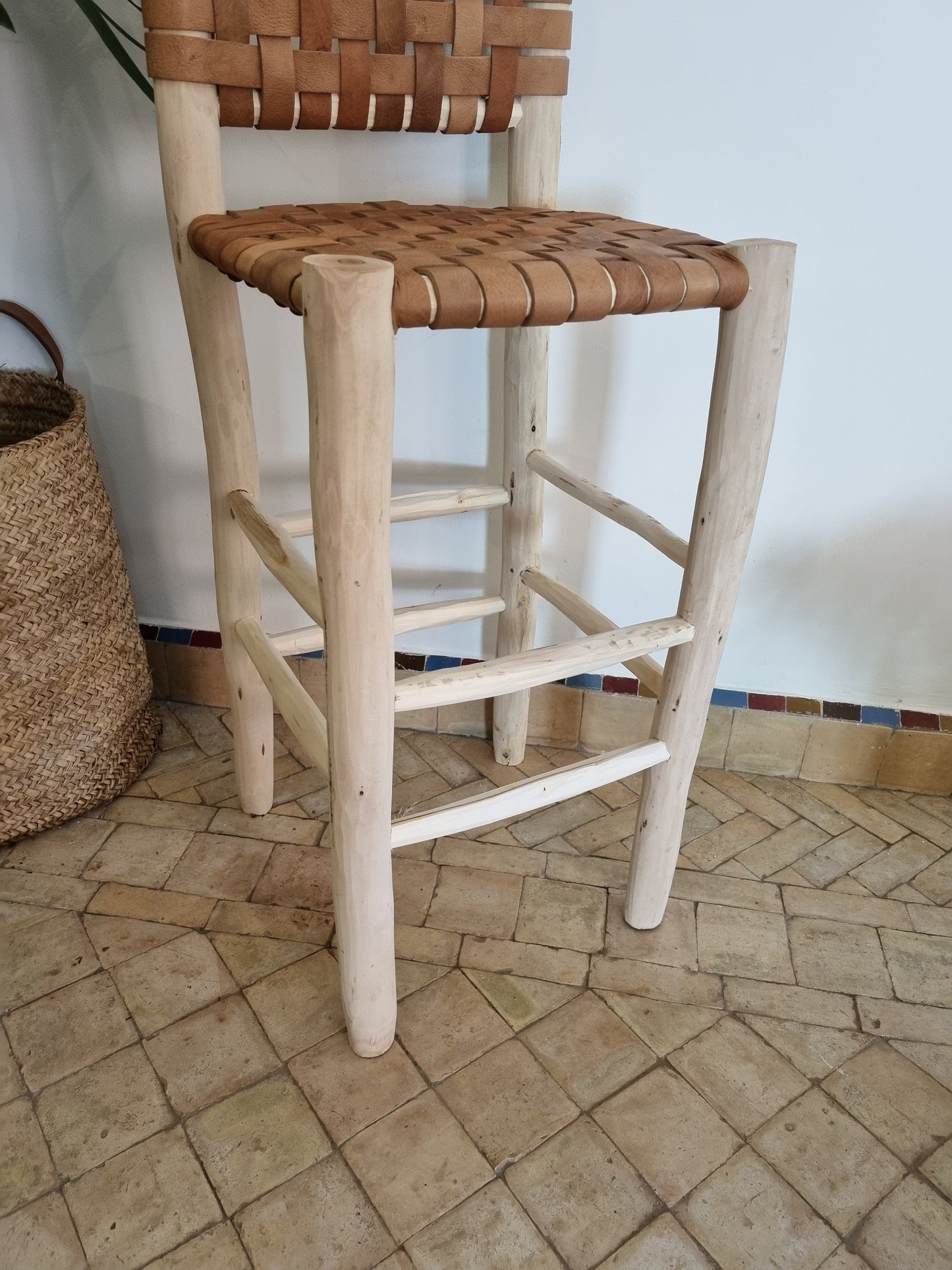 Le tabouret de bar cuir camel traditionnel marocain est indispensable pour une décoration bohème chic.